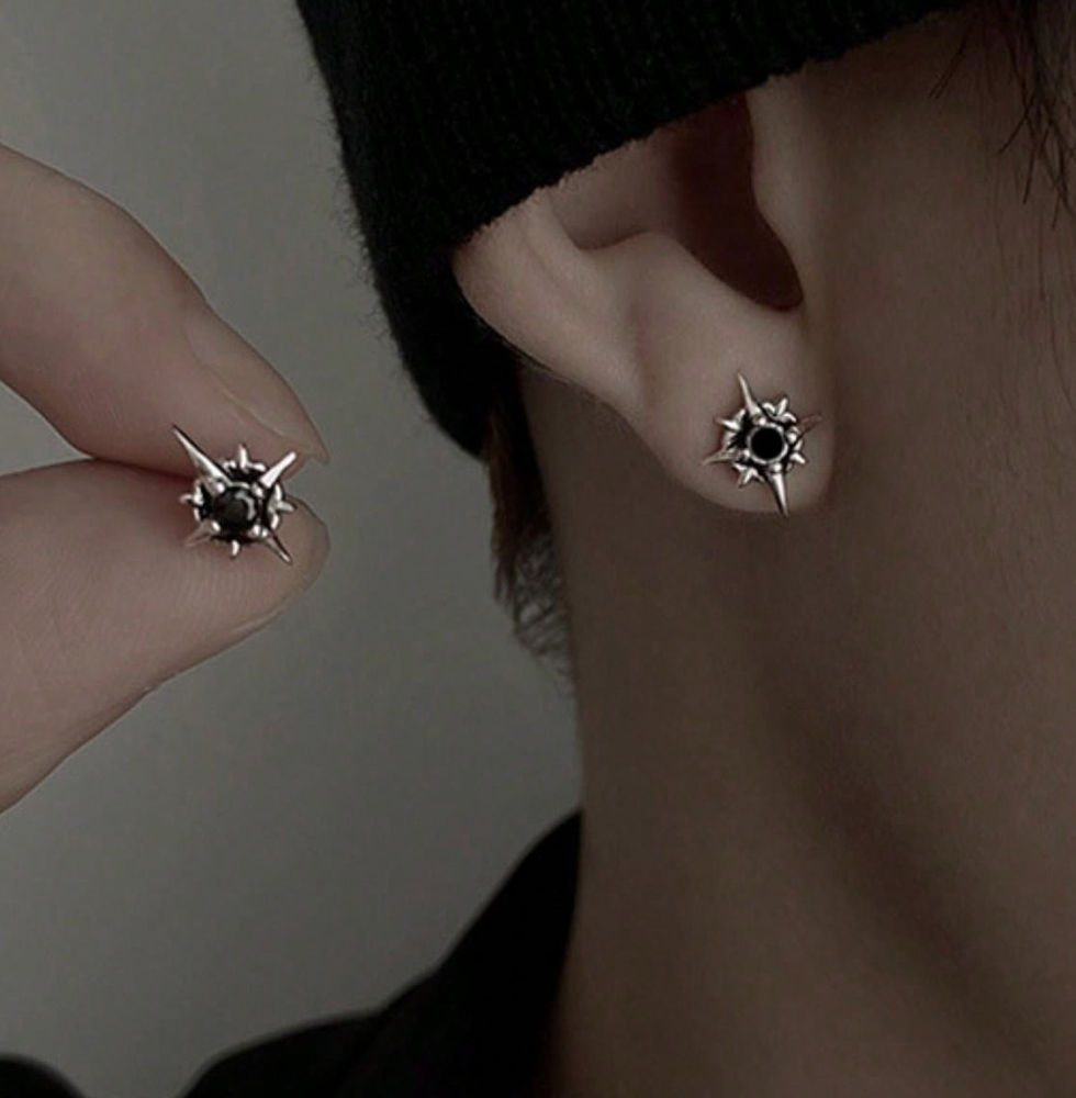 Brinco de estrela de metal cz preto, para homens e mulheres, estilo hip hop, co