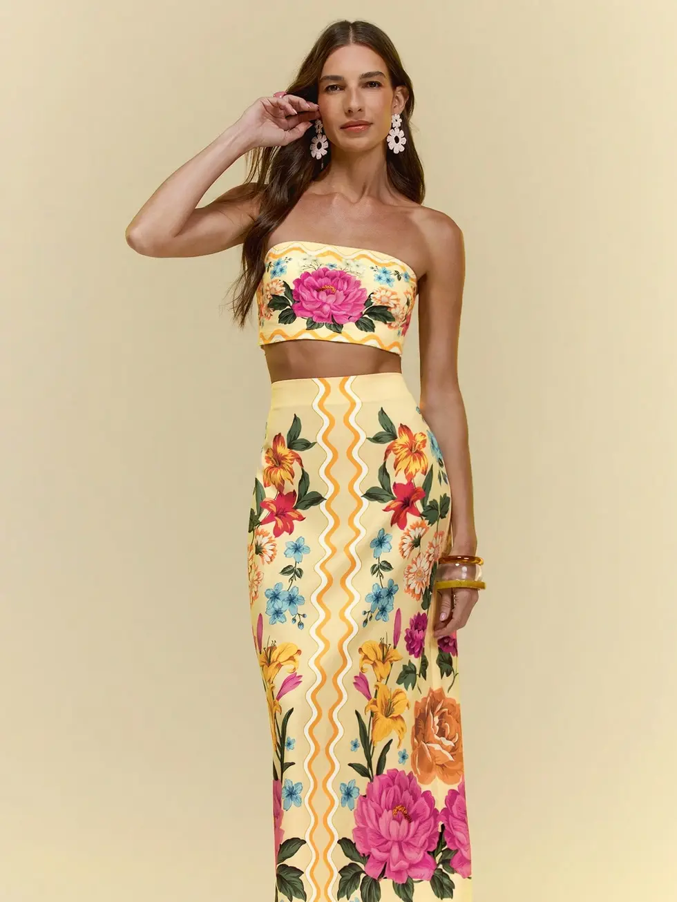 CAJUNI Conjunto de 2 peças Elegante Floral Feminino com Decote Halter e Sem Man