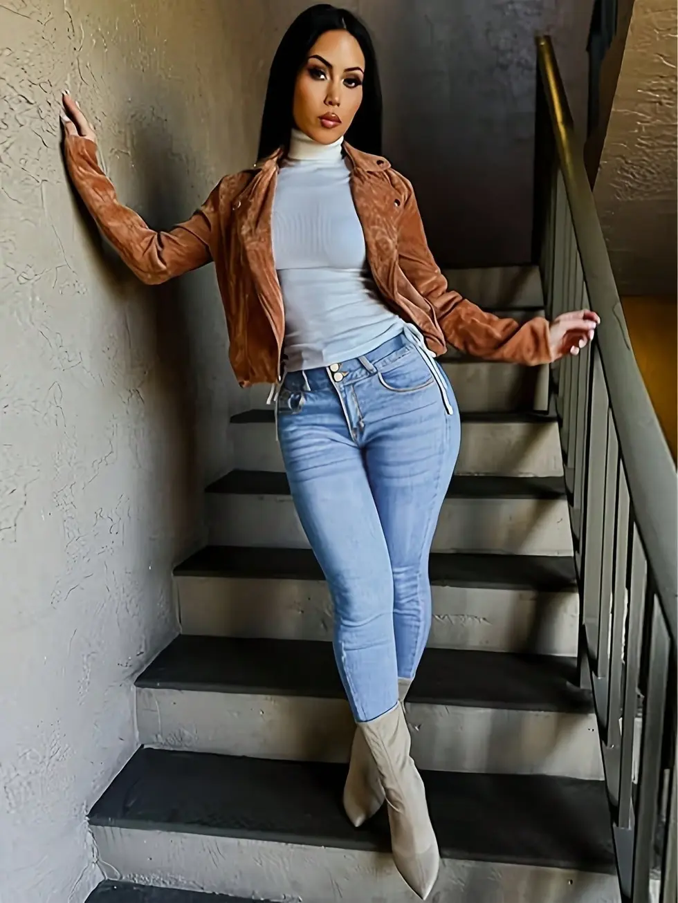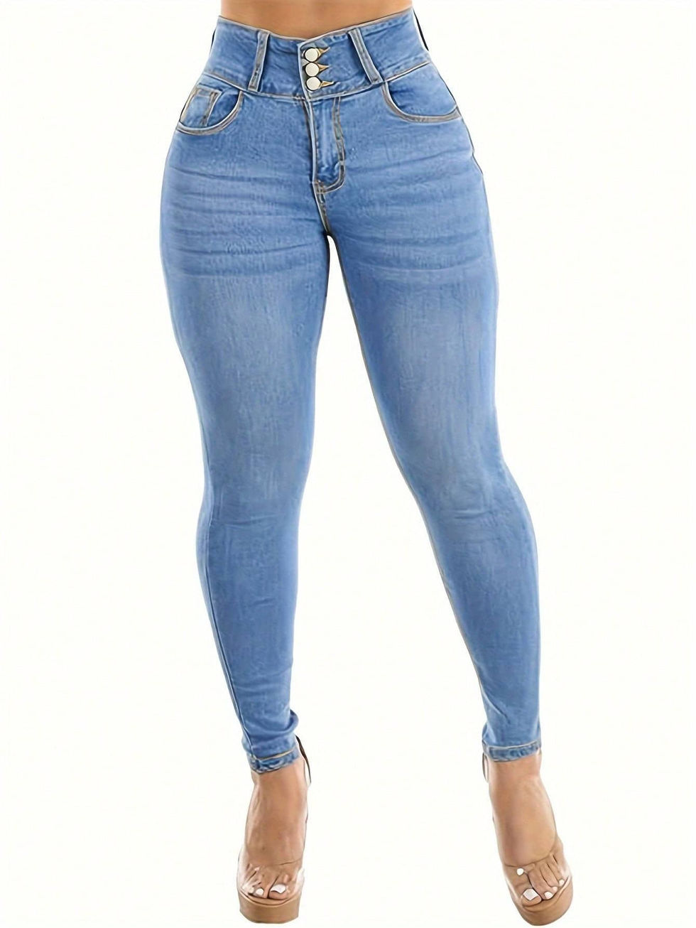 Calça Jeans Azul de Cintura Alta, Calça Lápis de Ajuste Slim para Realçar a Sil