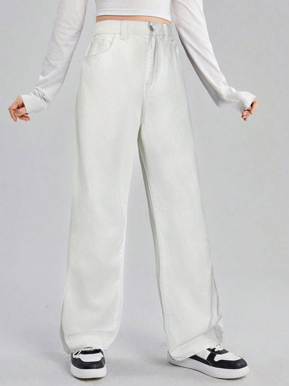 Calça Jeans Retas Sem Elastano Com Cintura Elástica Para Adolescentes