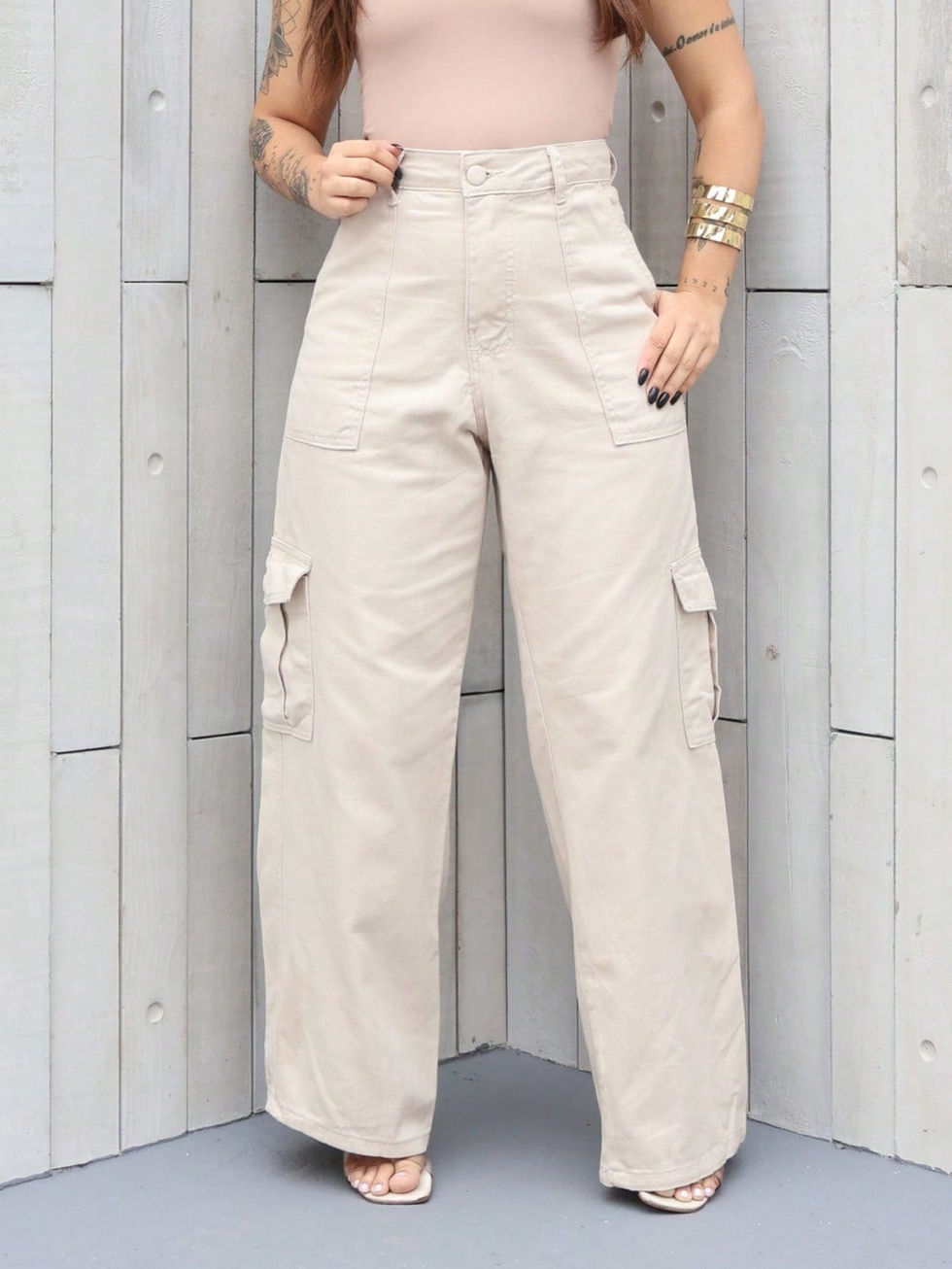 Calça Wide Leg Cargo Black Calça Jeans Feminina com Bolso Lateral Black