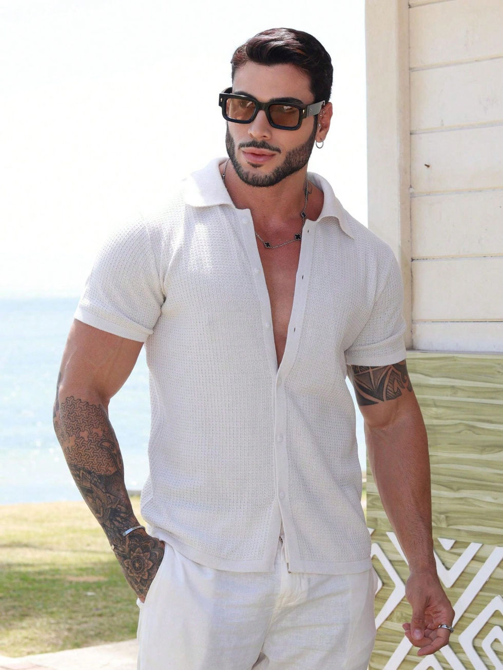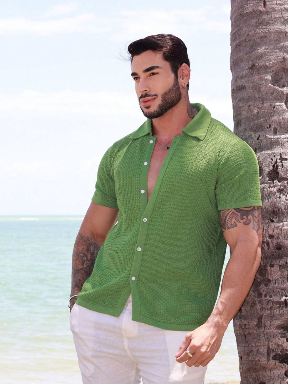 Camisa masculina camisaria manga curta gola polo tricot blusa verão primavera h