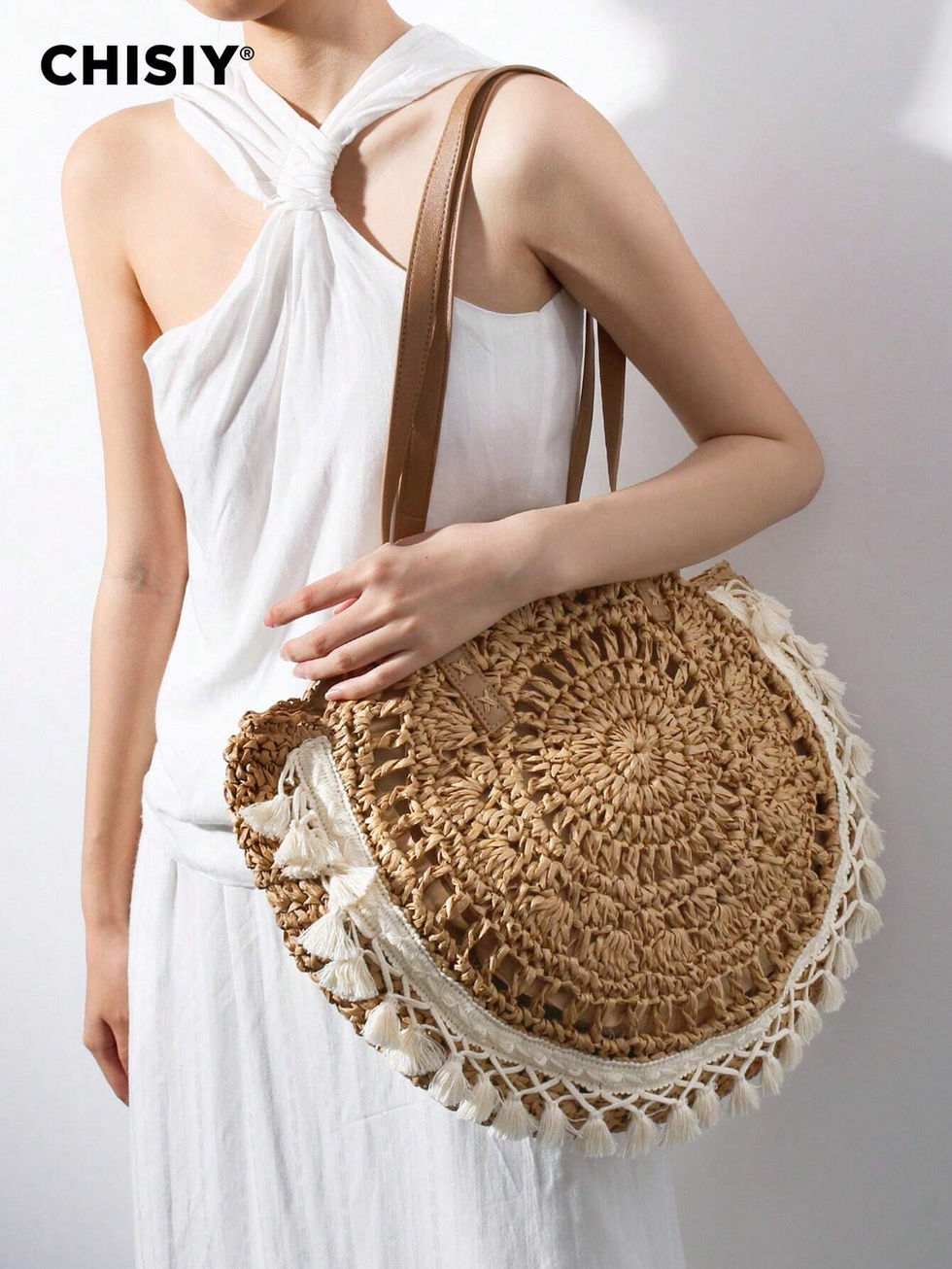 CHISIY Bolsa de Ombro Bolsa Clutch Bolsa de Palha Bolsa Balde, Bolsa de Casamen