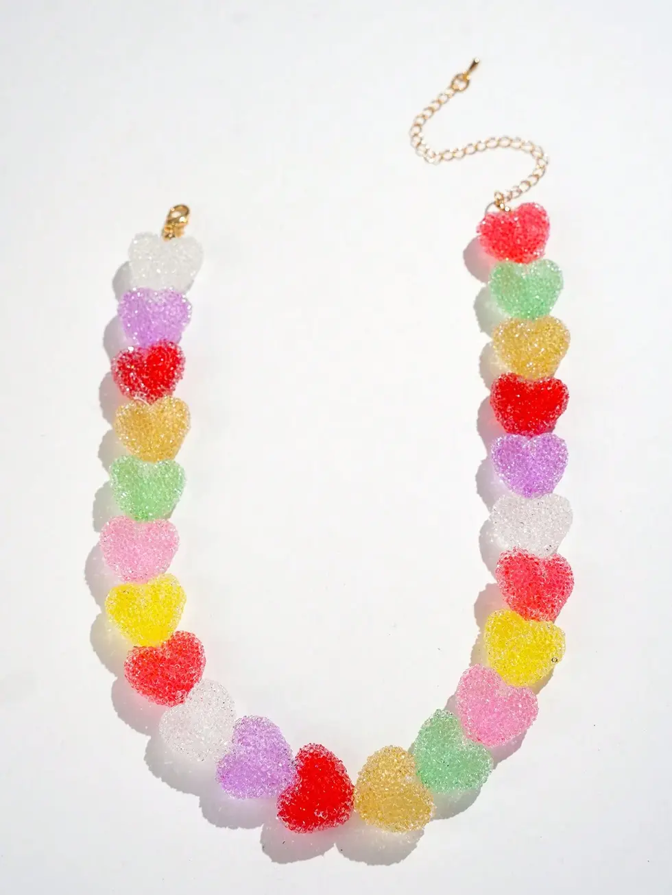 Colar de Contas Coloridas em Formato de Doce ZAA, Colar de Resina Colorida em F