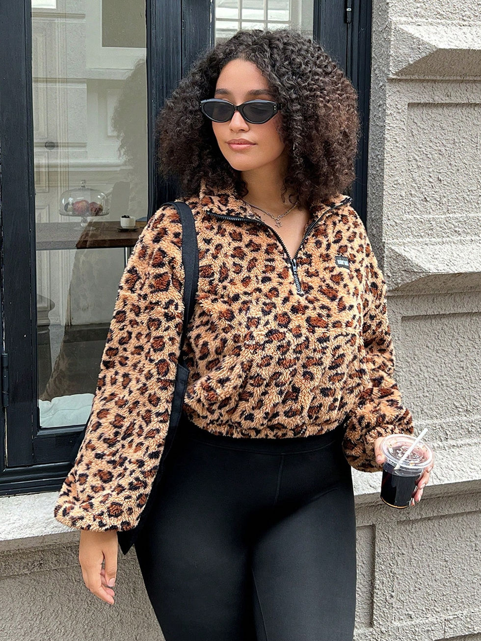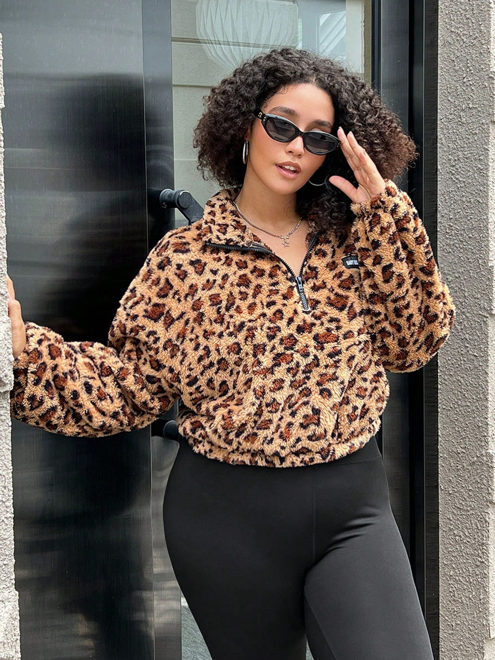 Comfortcana Casaco de Moletom Longo Estampa de Leopardo Felpuda