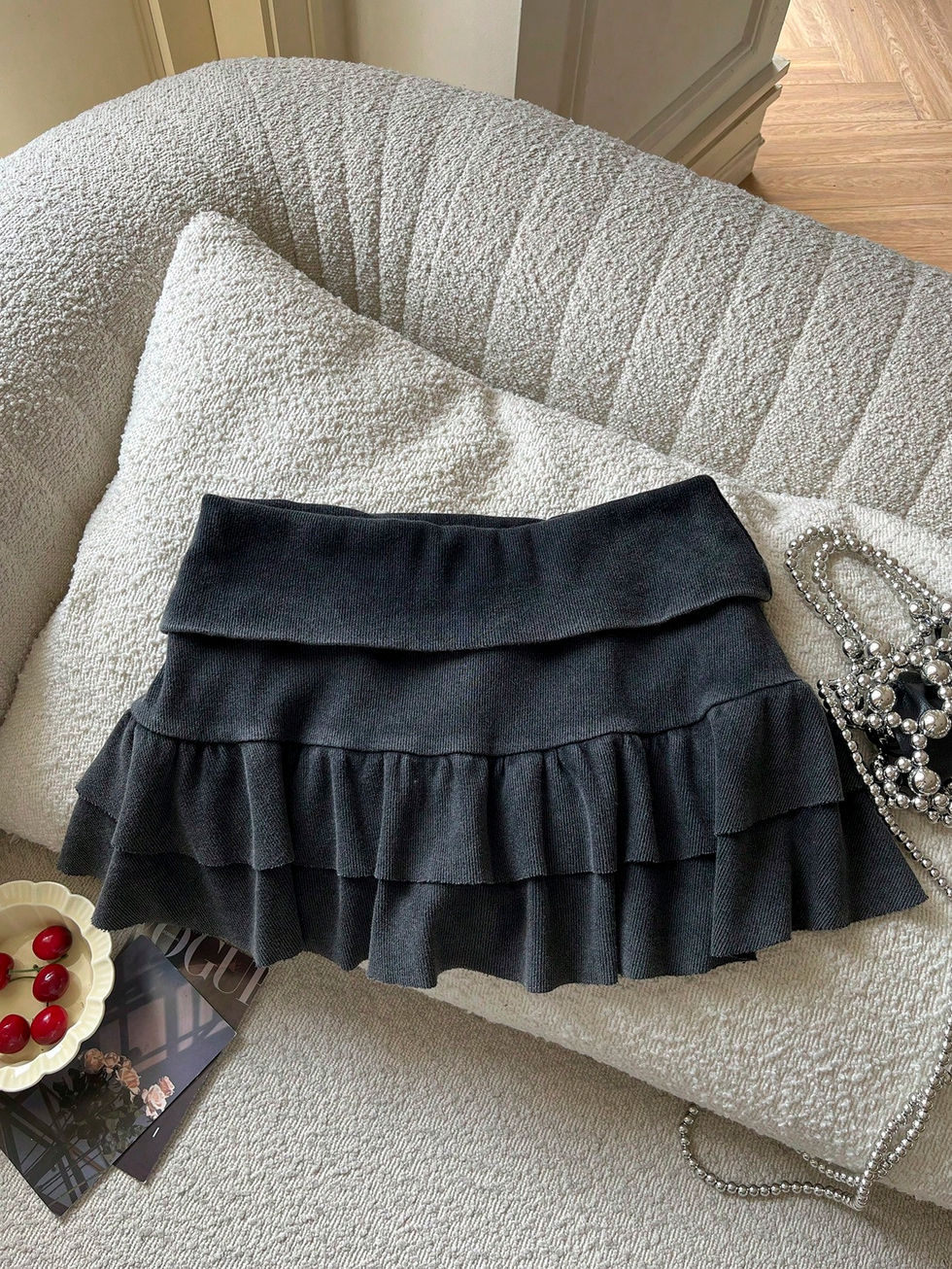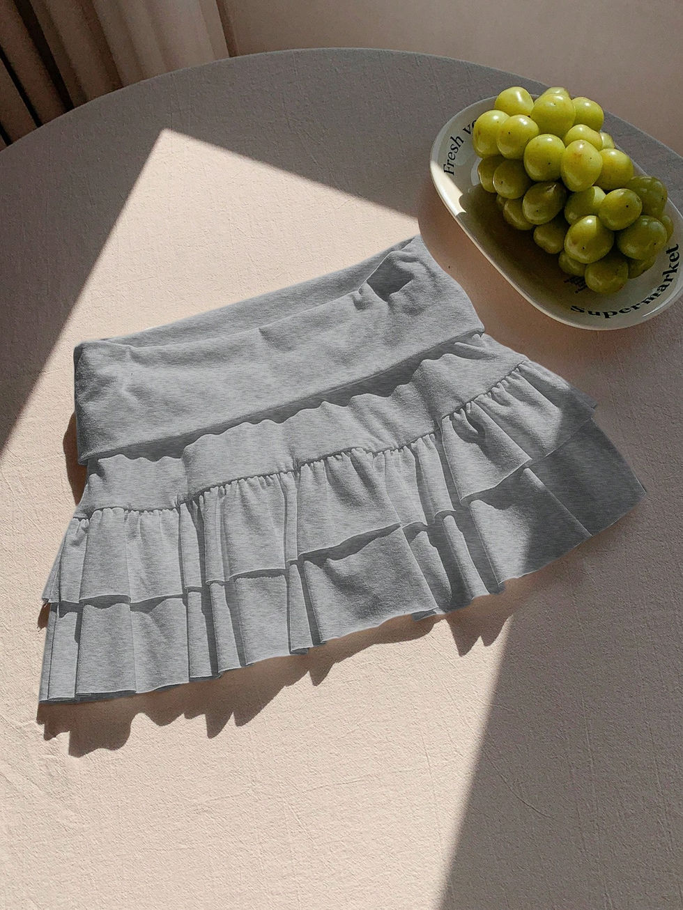 Detalhes : Em camadas, Bainha com babado, Cós forrado