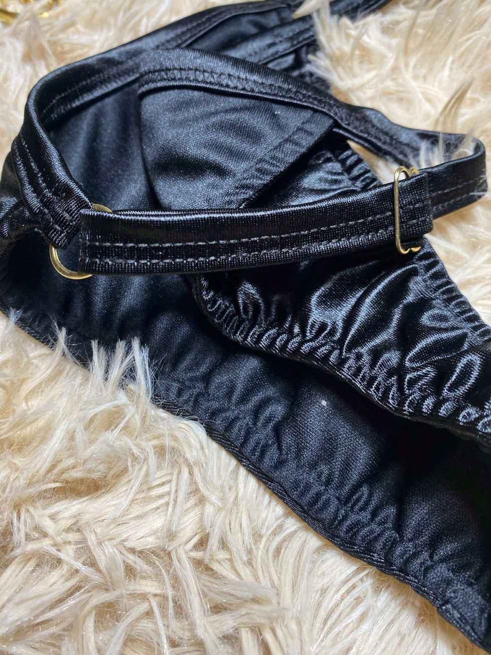 Conjunto Biquíni Preto Feminino Chique com Detalhe de Sol Dourado Malha Acetina