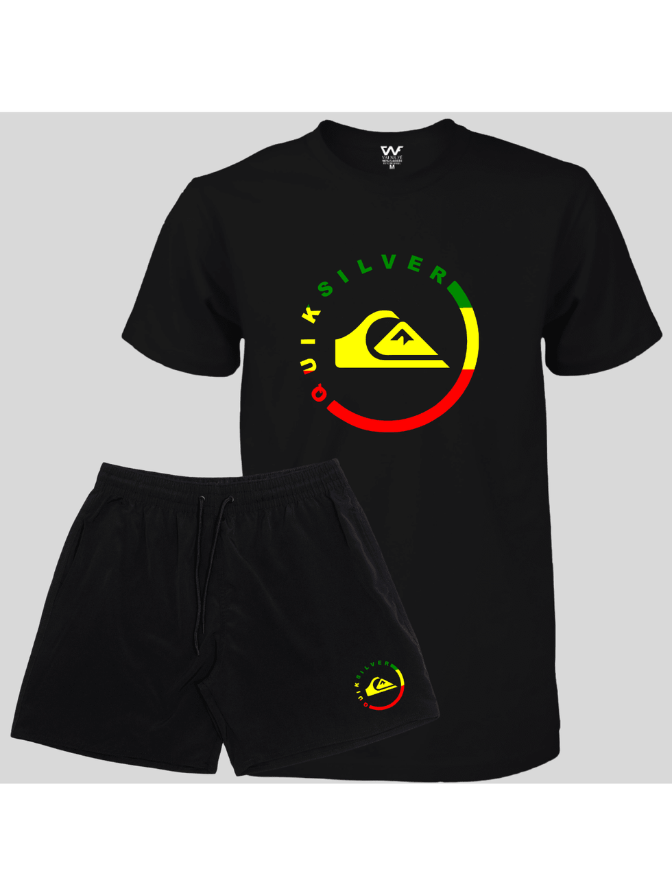 Conjunto Camiseta Masculina Quiksilver + Short Praia Masculino Elastano