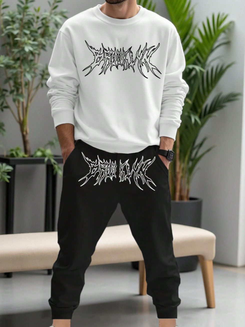 Conjunto de Moletom e Calça Estampados Masculinos, Conjunto Casual na Moda com