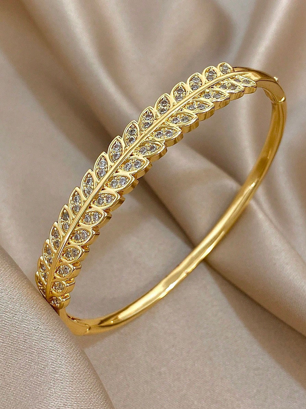 Conjunto de Pulseiras Bangle de Aço Inoxidável Folha e Zircônia Banhado a Ouro