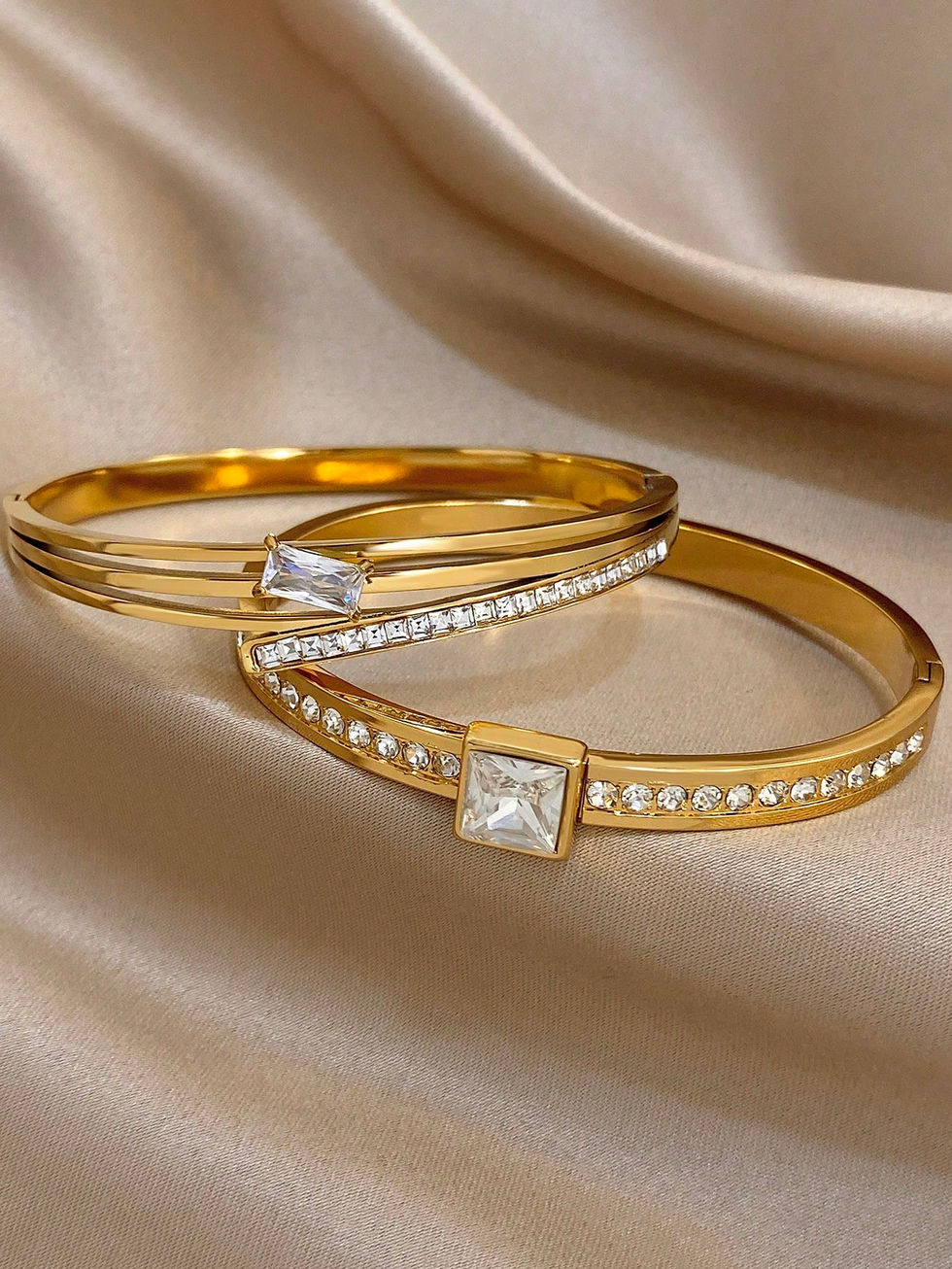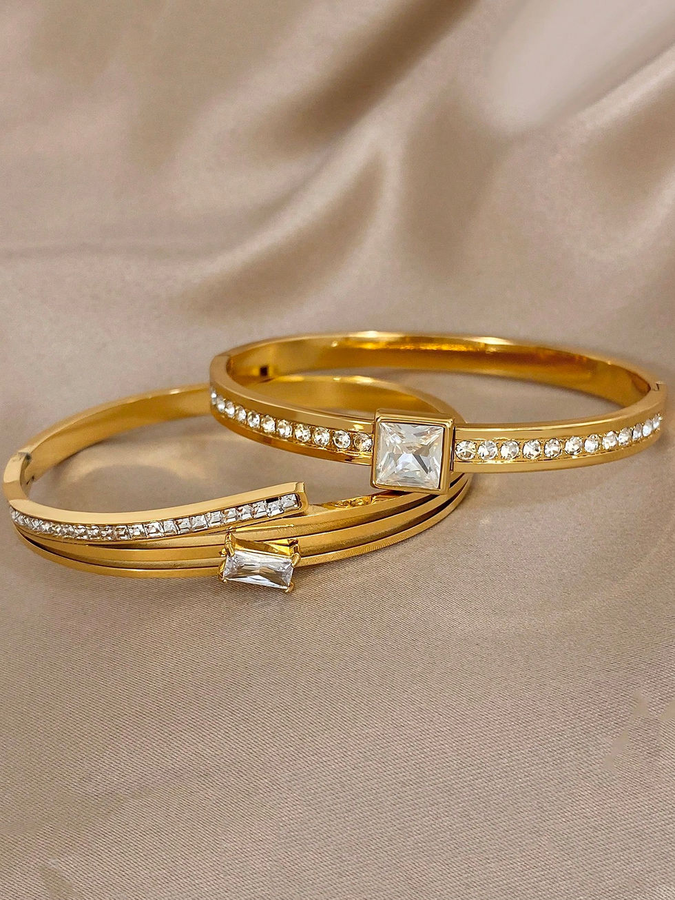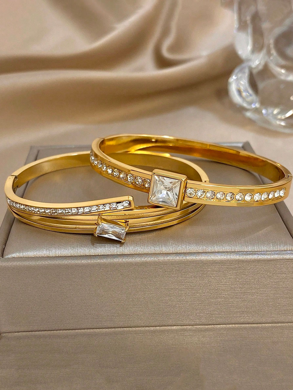 Conjunto de Pulseiras Quadradas de Aço Inoxidável Banhado a Ouro 18K com Zircôn