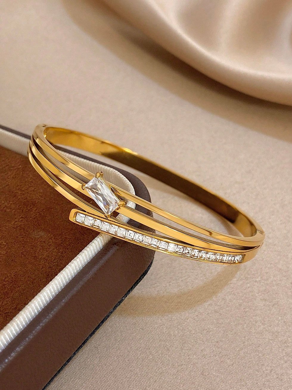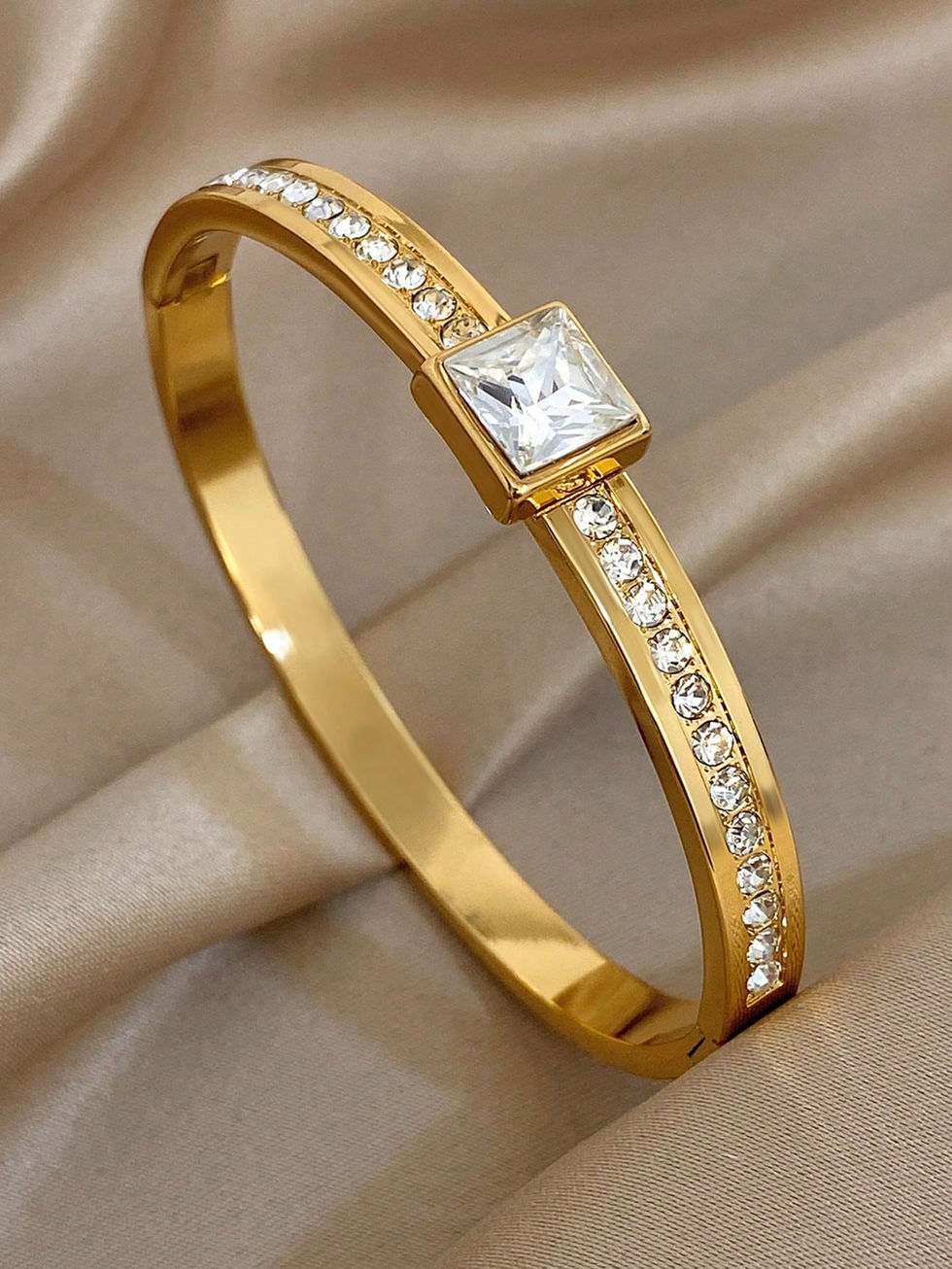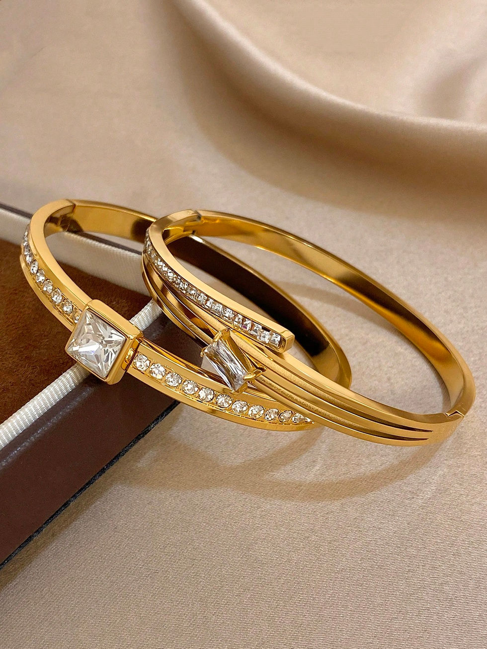 Conjunto de Pulseiras Quadradas de Aço Inoxidável Banhado a Ouro 18K com Zircôn