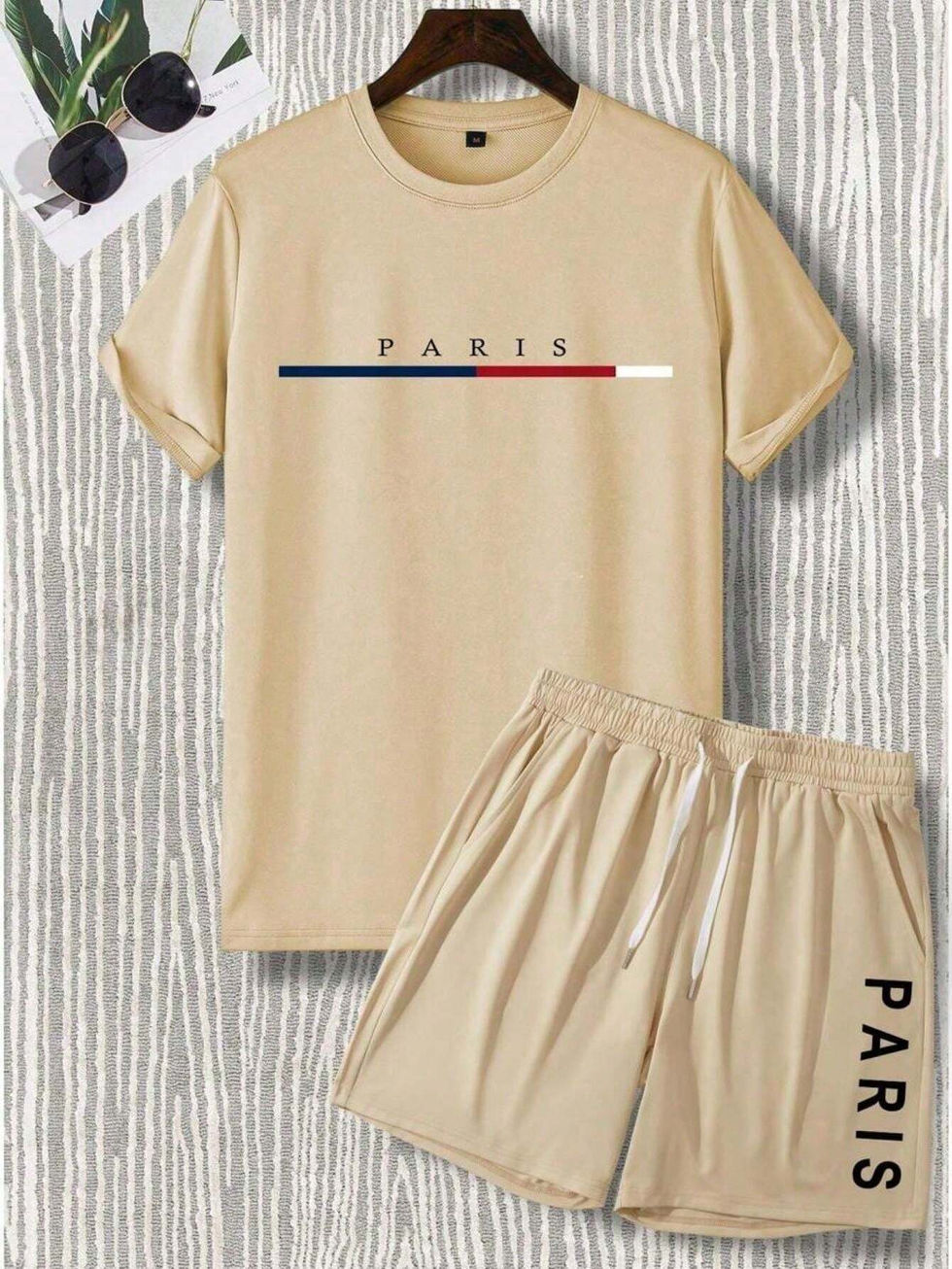 Conjunto masculino basico camiseta e bermuda moletom Paris