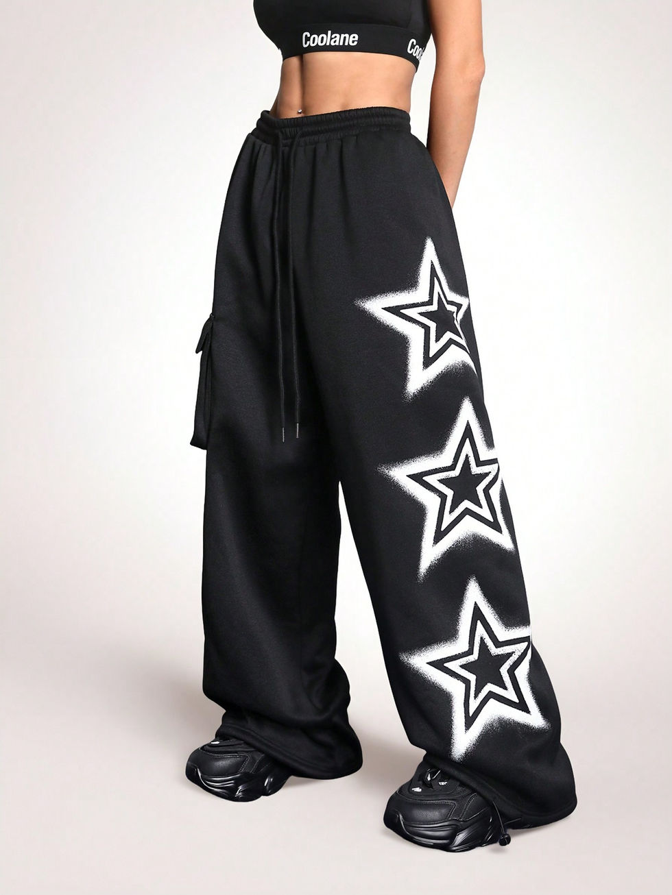 Coolane Calça Baggy de Malha Forrada Térmica com Estampa de Estrela para Outono