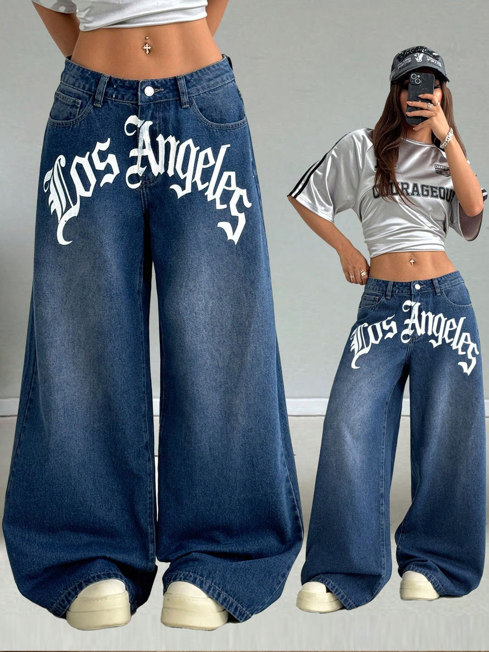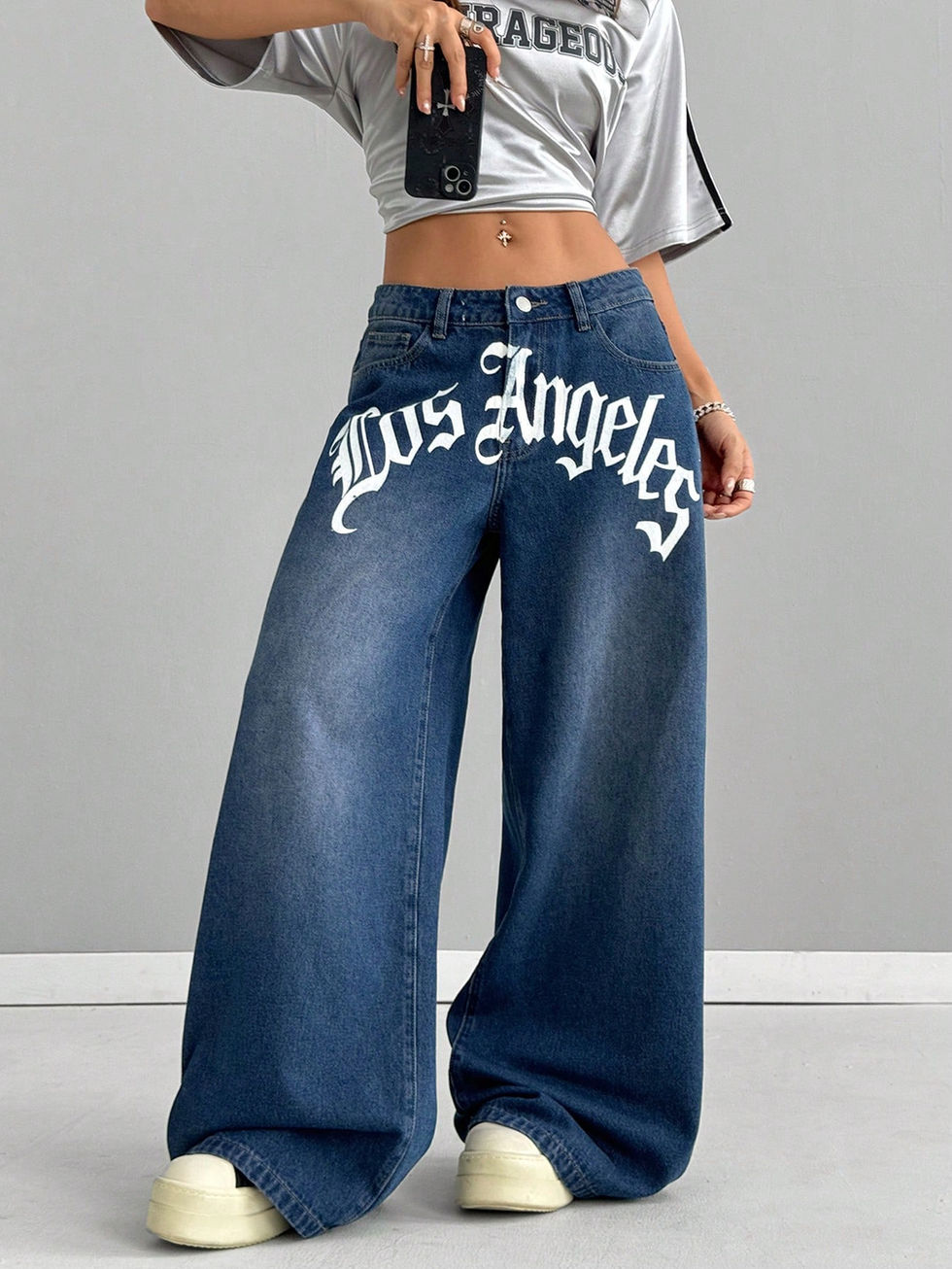 Coolane Jeans folgados desbotados com gráficos de streetwear