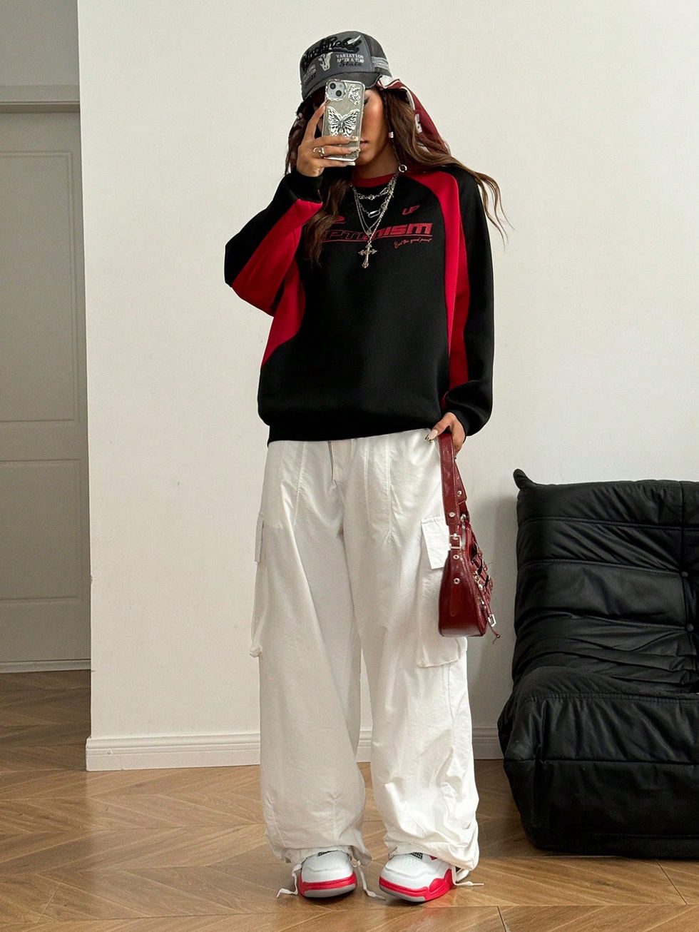 Coolane Moletom Folgado com Bloco de Cores em Fleece da Moda para Mulheres, Out