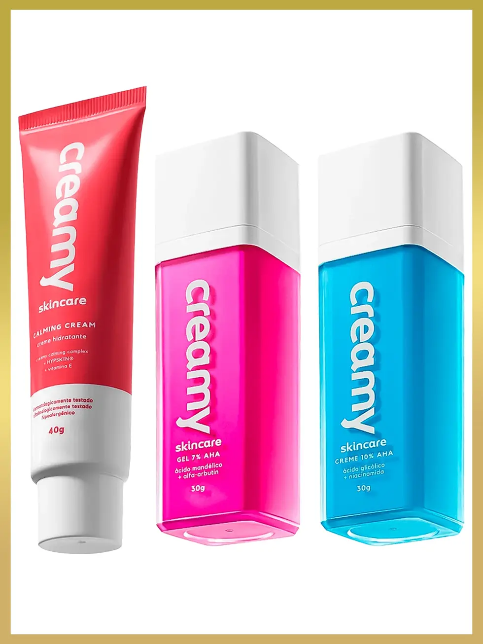 Creamy Trio Calming Cream + Àcido Glicólico + Àcido Mandélico (3 Produtos) Crea