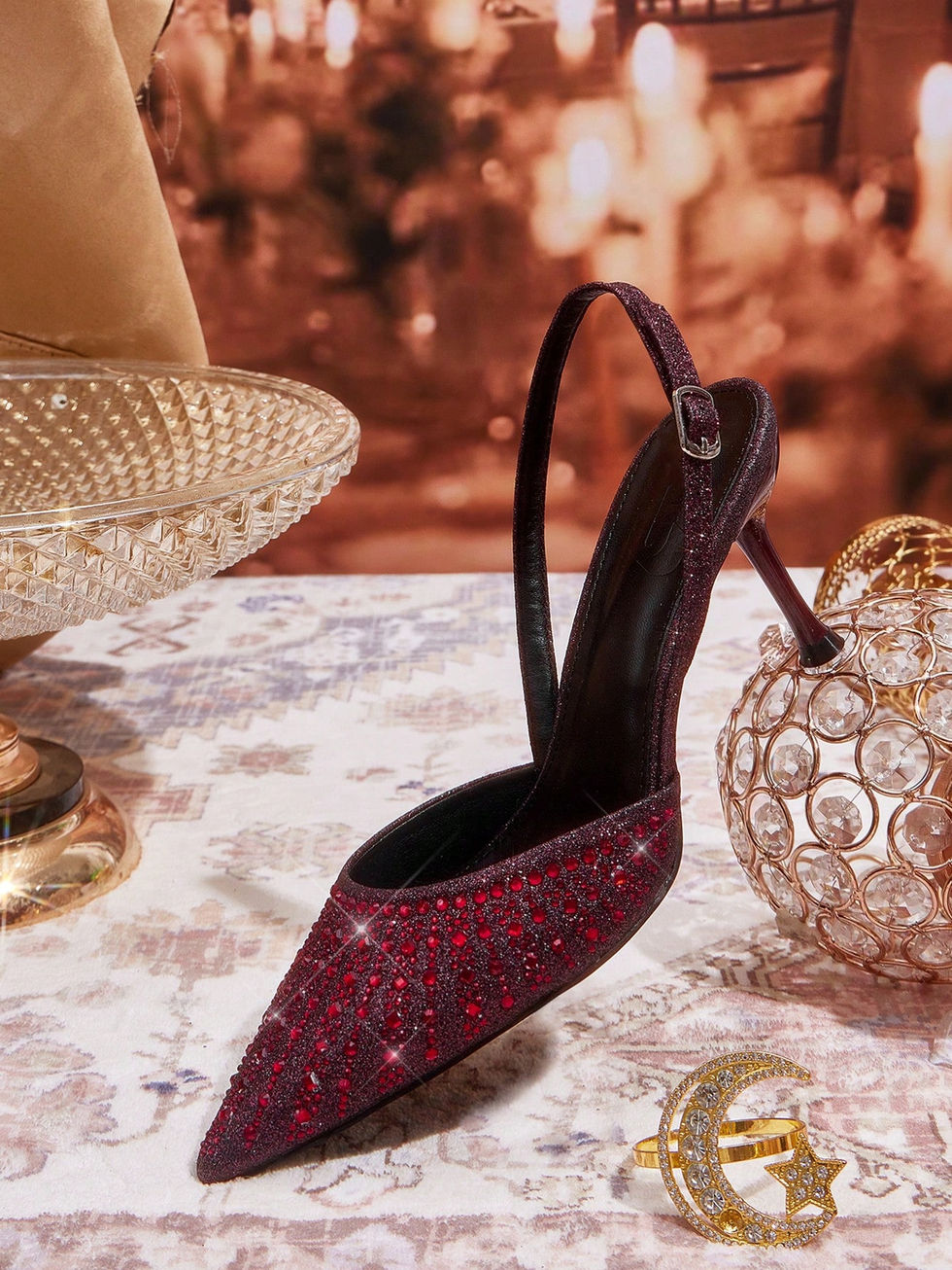 CUCCOO TILAWA Sapatos de Salto Alto Fechados com Bico Fino, Decorados com Stras