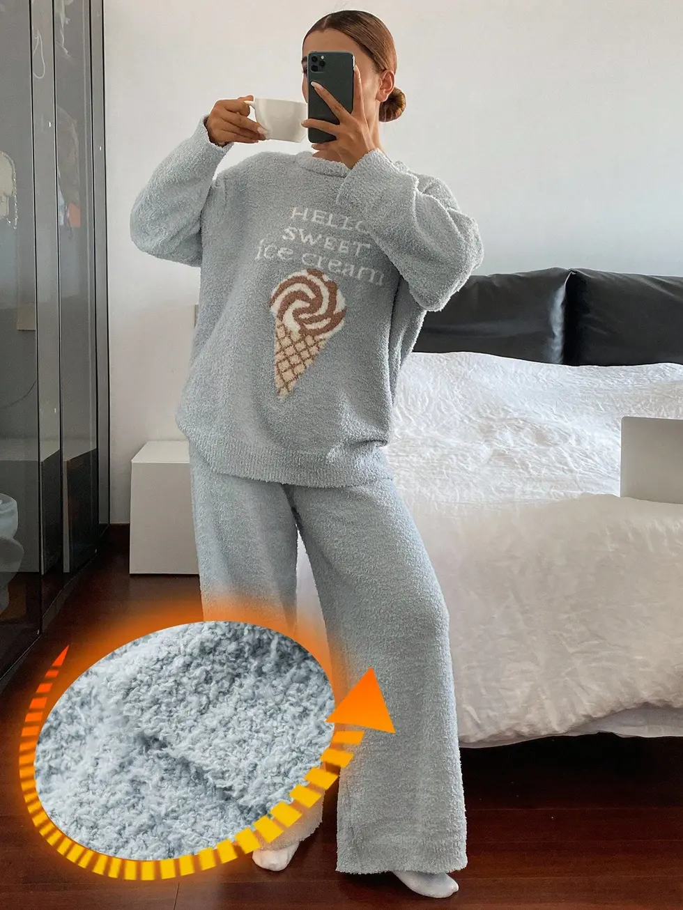 DAZY 2 Peças Conjunto de Pijama Solto de Malha Fleece com Estampa de Sorvete pa
