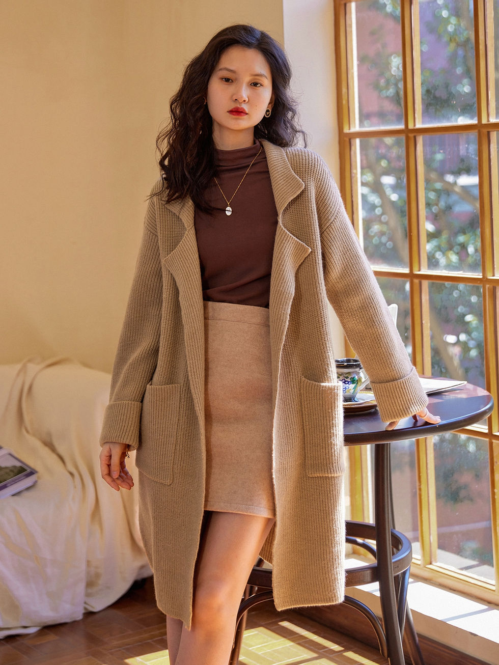DAZY Cardigans Bolso Duplo Pescoço de lapela
