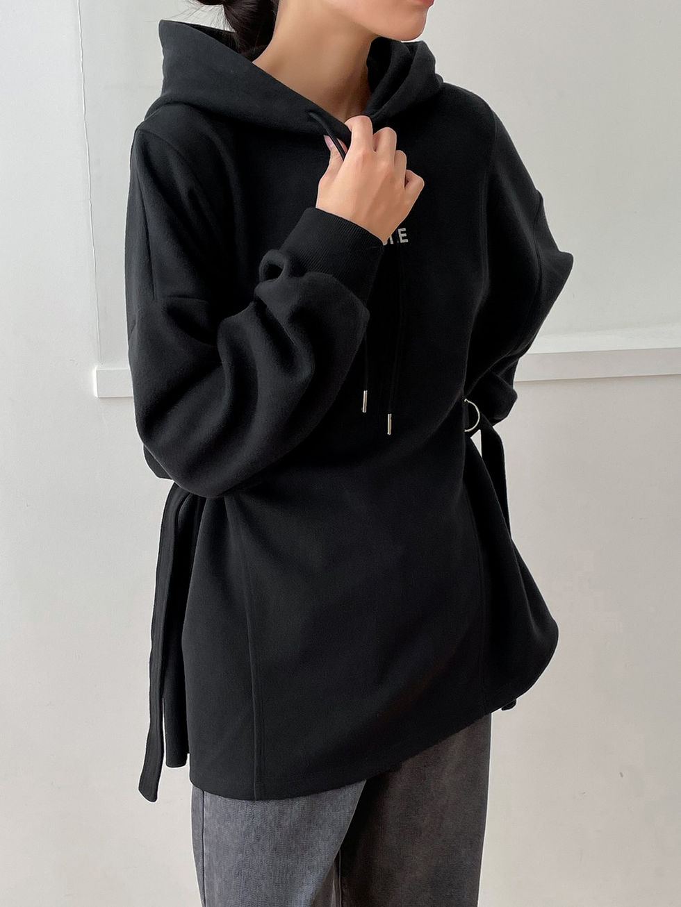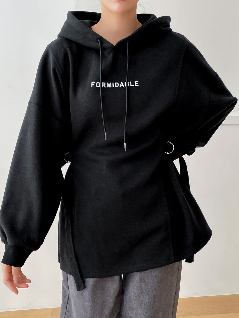 Dazy-Less Capuz Bordado de letras Ombro caído Cordão