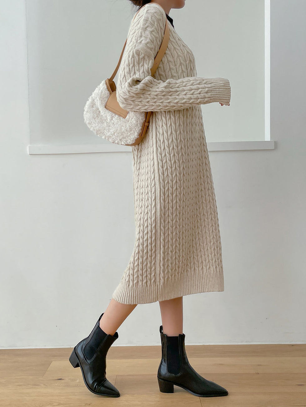 Dazy-Less Vestido de tricô Colar Contraste Malha de Cabo Ombro caído