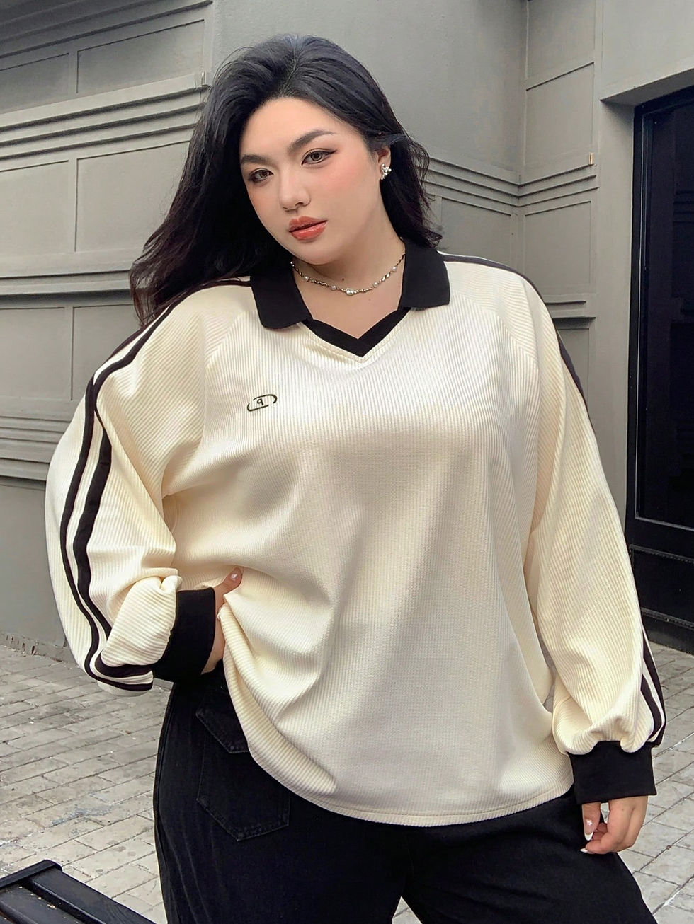 Dazy Plus Moletom Folgado com Estampa de Fita em Contraste de Cor na Gola