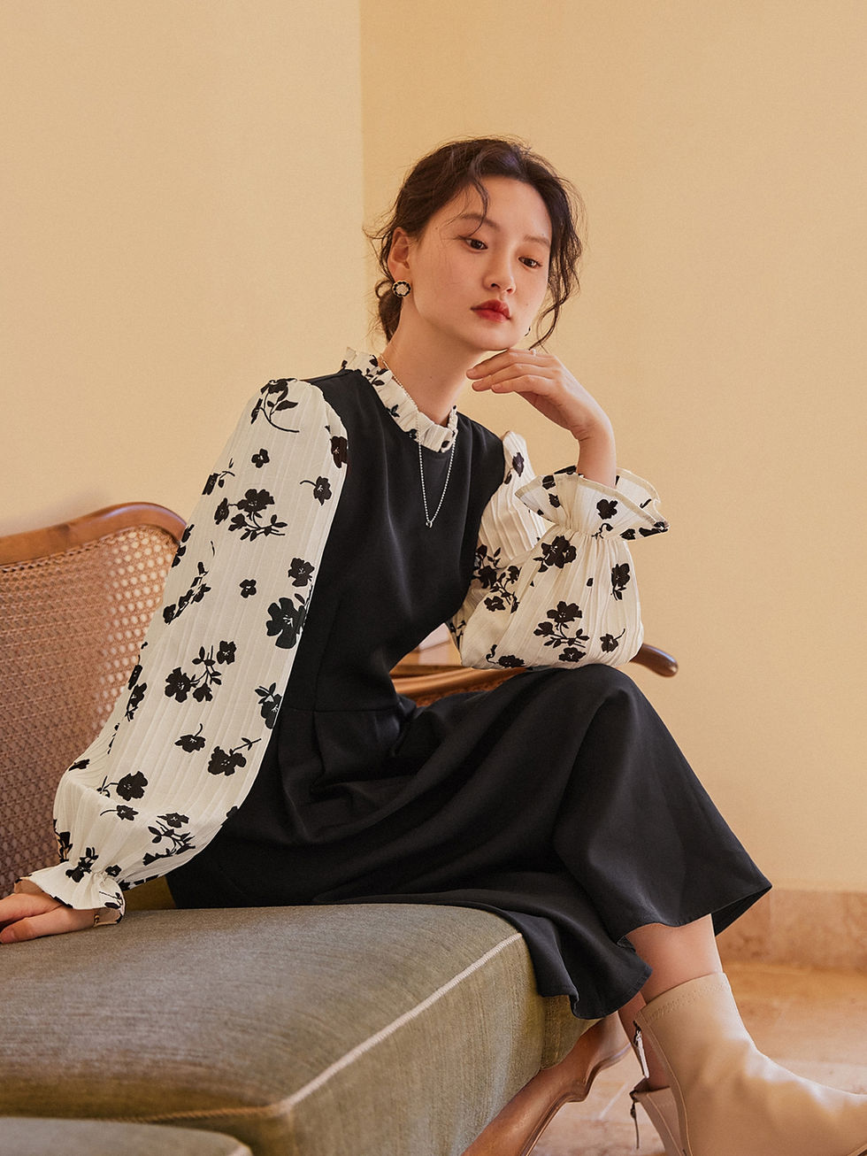 DAZY Vestidos Contraste Impressão Floral Manga Babado