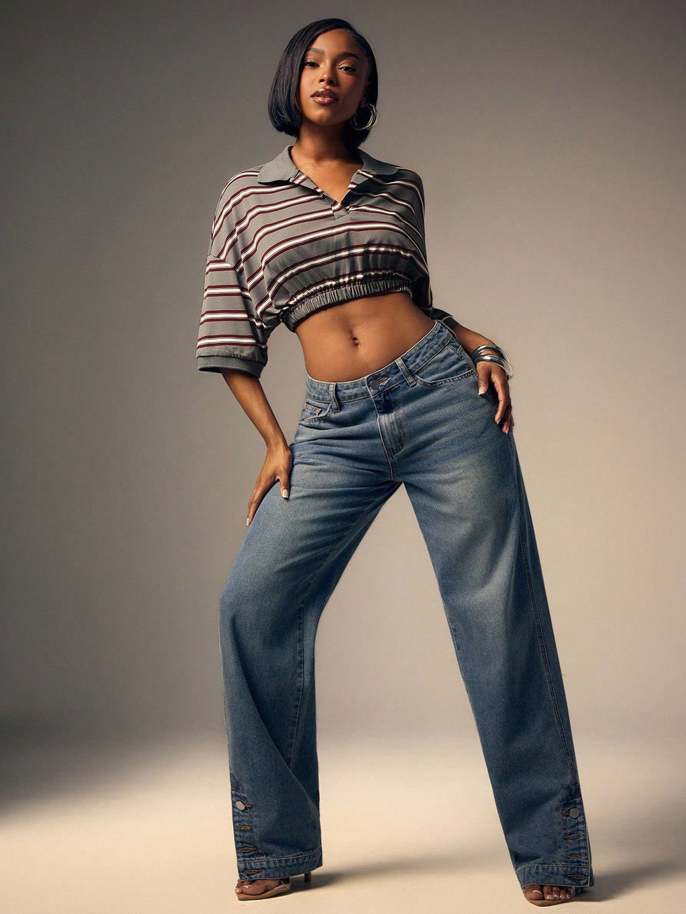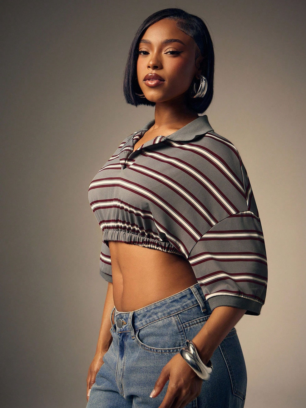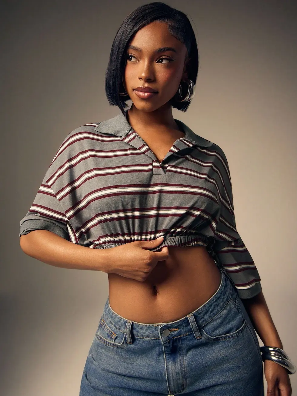 Denimoi Camisa Polo Listrada com Cintura Marcada