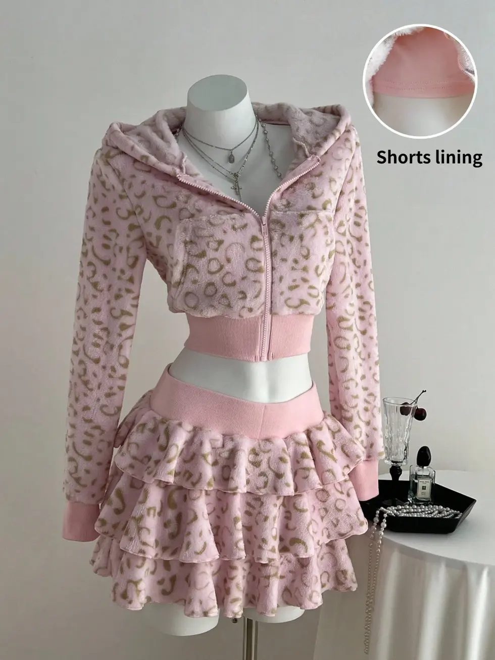 Elamini 2 peças/Conjunto Jaqueta com Capuz de Manga Longa Forrada Termicamente