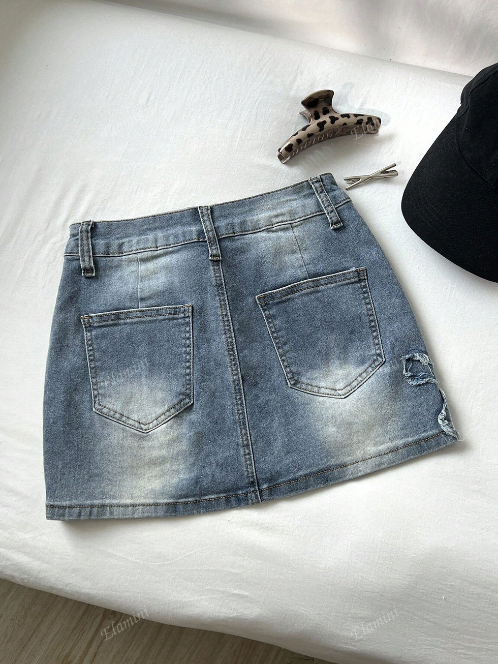Elamini Saia Denim Curta Bodycon com Bolsos Cruzados para Mulheres