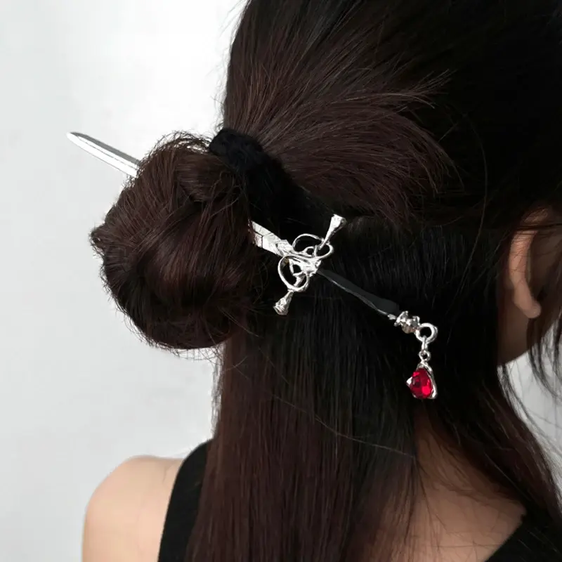 Espada criativa rubi pingente grampos de cabelo vintage estilo chinês espada va