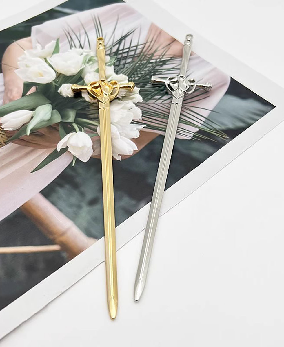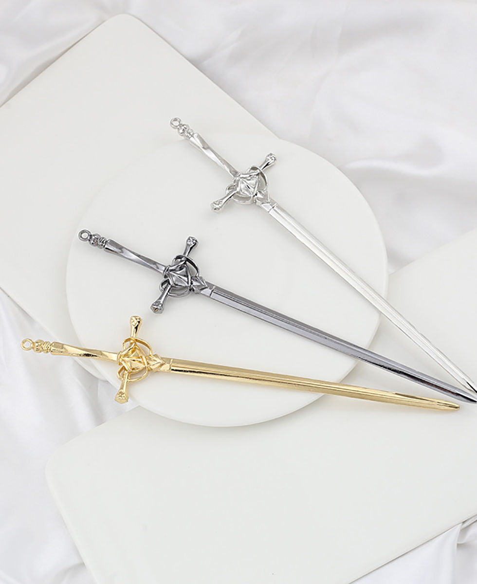 Espada de metal personalizada grampo de cabelo feminino criativo vara de cabelo