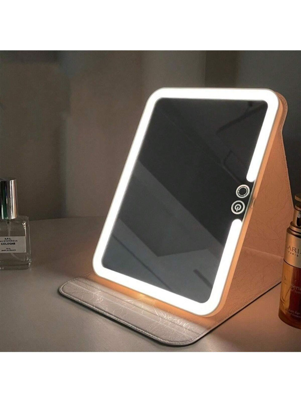 Espelho Decorativo Led Maquiagem Estética Recarregável Quadrado Capa De Couro P