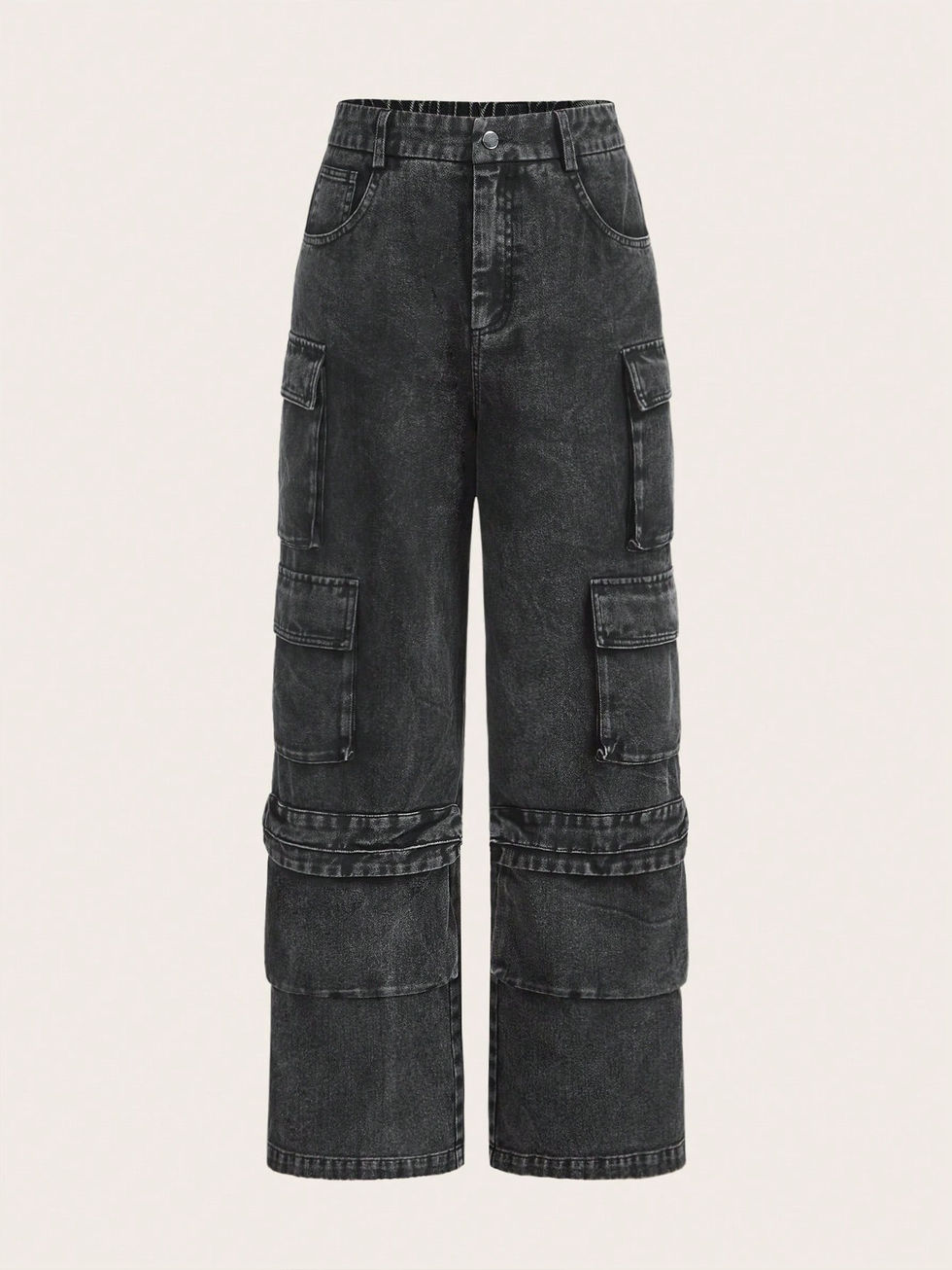 EZwear Calça Pantalona Preta Trançada para Mulheres