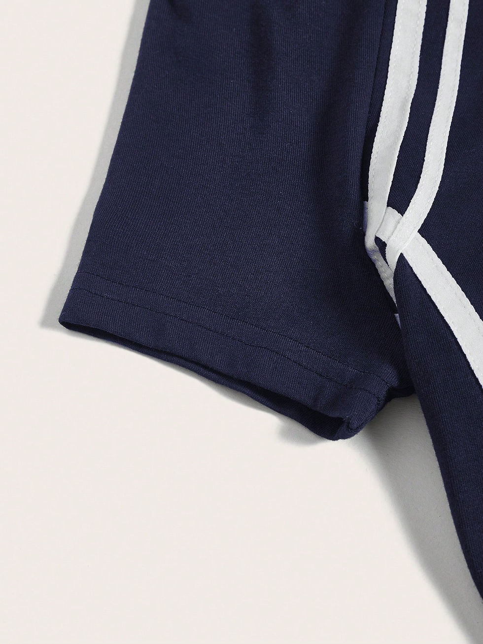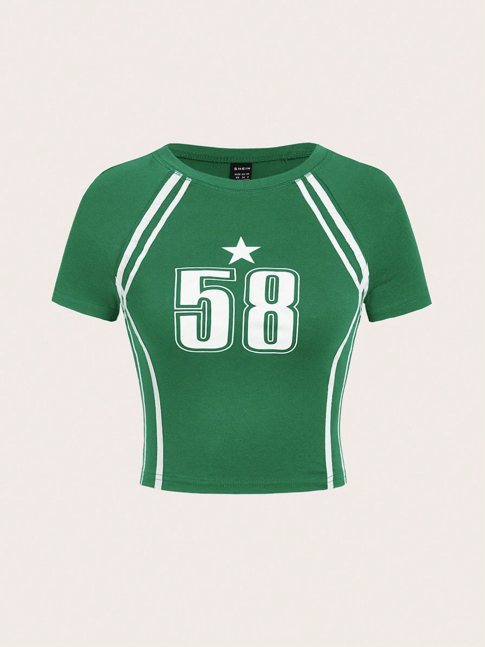 EZwear Listrado & Impressão De Número Camiseta Cortada