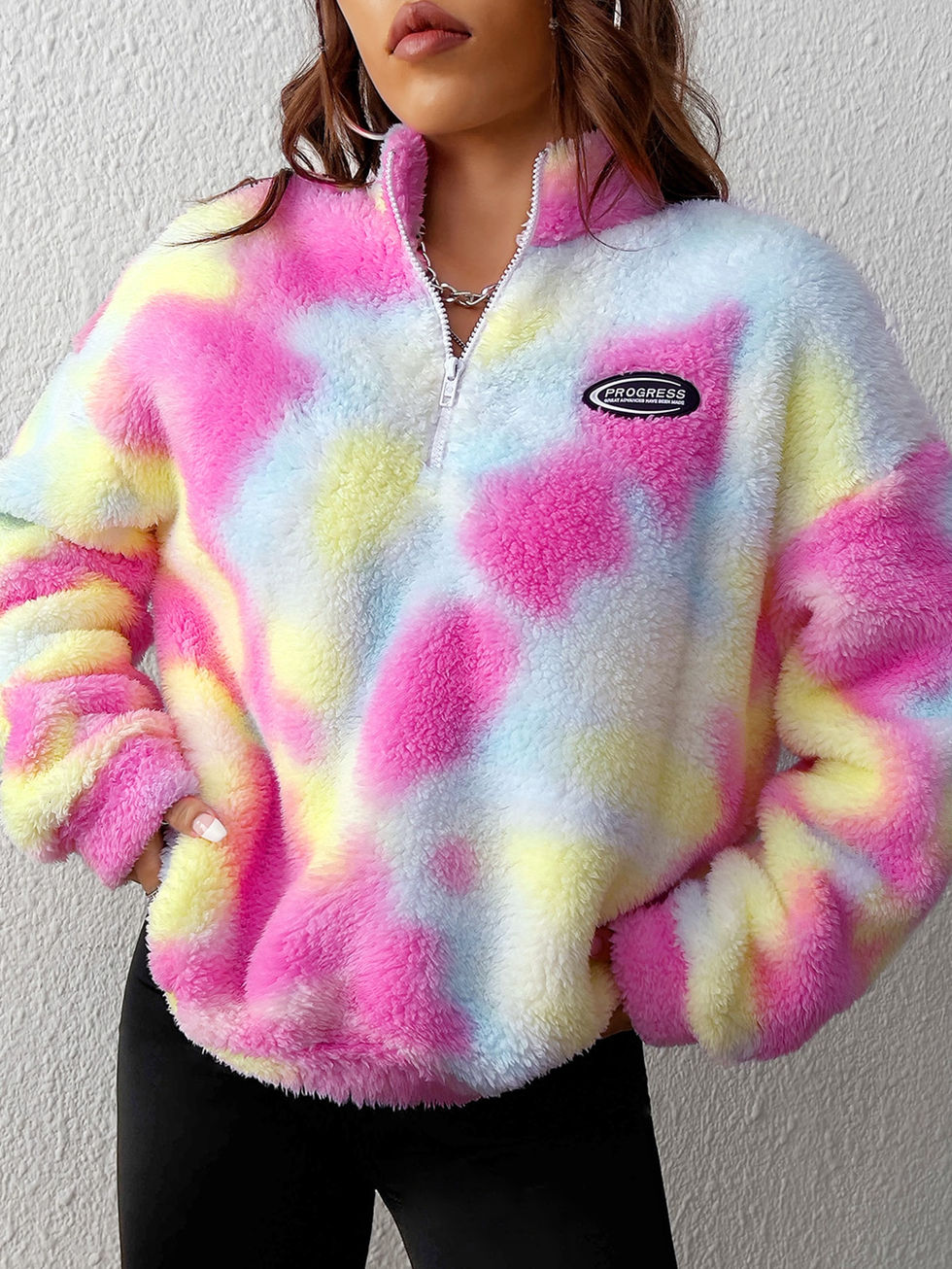 EZwear Moletom com Zíper até o Ombro Quarto Tie Dye com Detalhe