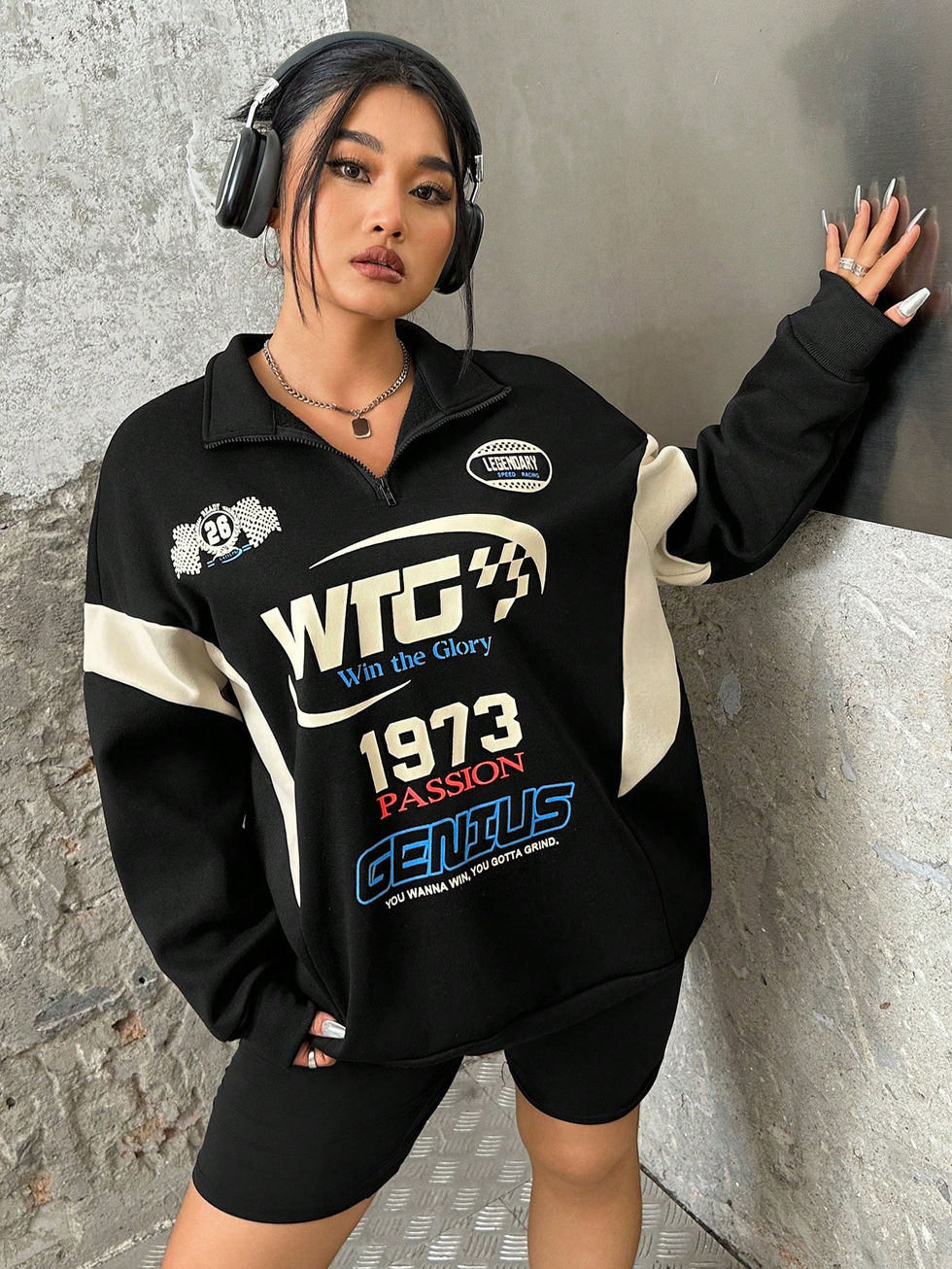 EZwear Moletom com Zíper Frontal e Estampa Gráfica de Corrida com Slogan