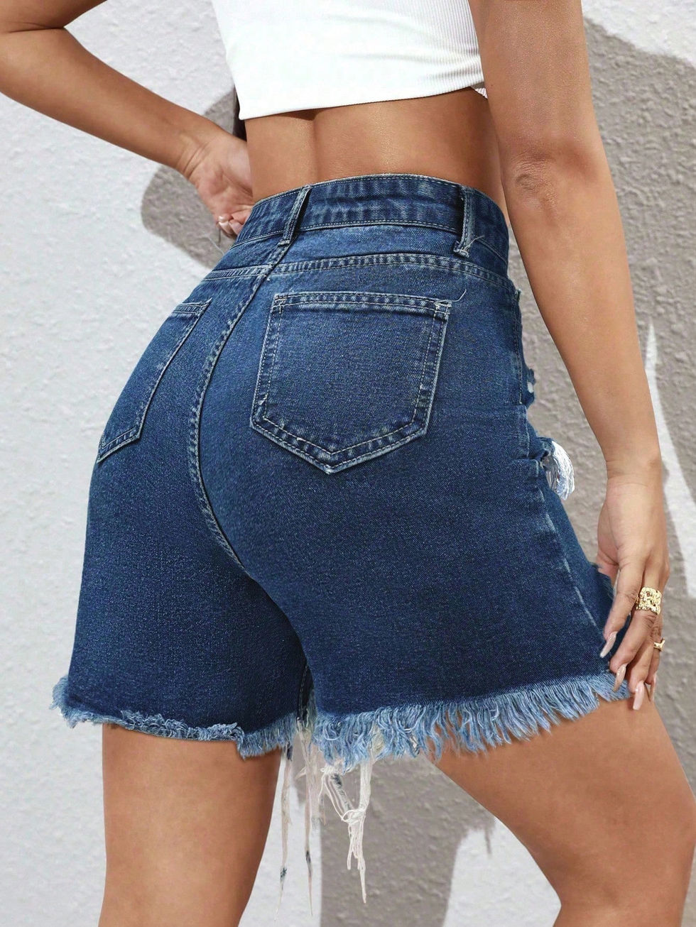 EZwear Shorts de Denim com Bordas Desfiadas e Bolsos Frontais com Botão, Vestuá
