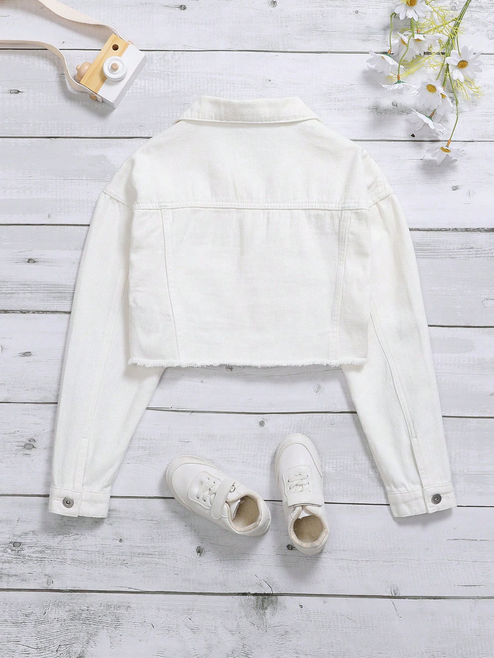 Garota Adolescente 1 Peça Detalhe Da Aba Jaqueta Denim