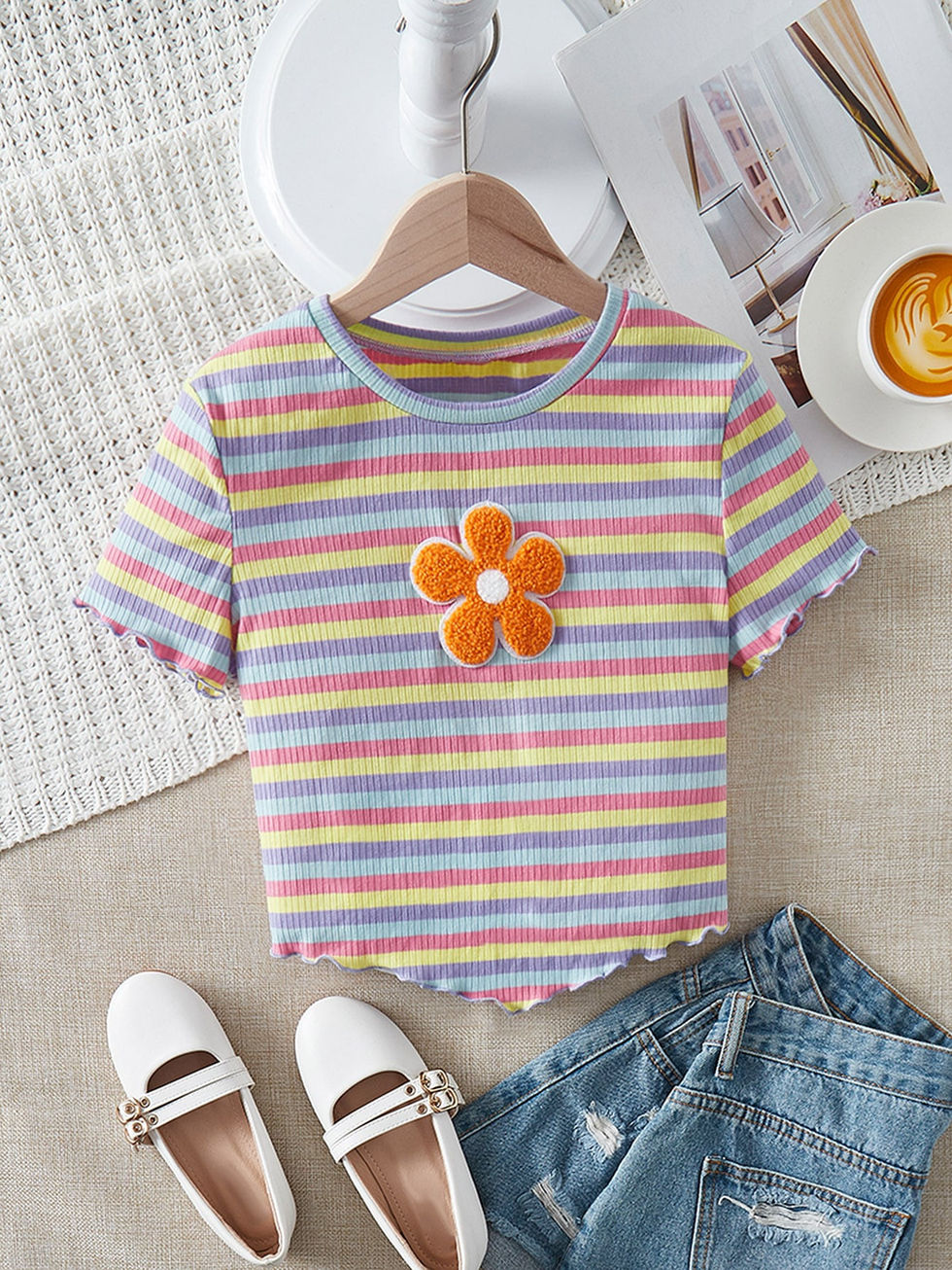 Garotas Adolescentes Floral Corrigido Listrado Franzido Camiseta