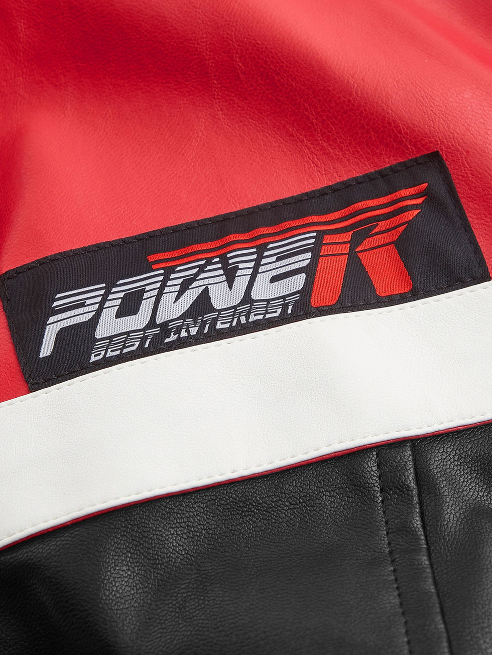 ICON Jaqueta Bikercore Y2k com Zíper em Couro PU e Bloco de Cor