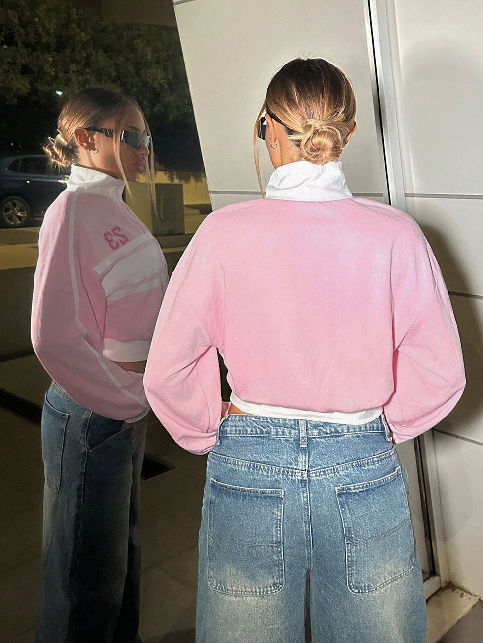 ICON Moletom de Manga Longa Casual com Impressão de Letra, Bloco de Cor e Gola