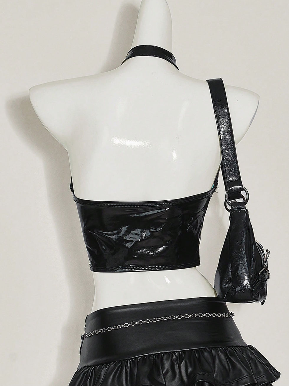 ICON Regata Mulheres Moda Y2k Goth, Decoração de Ilhós de Couro PU, Cordã