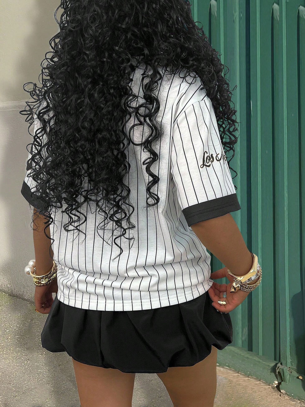 INAWLY Camiseta Casual Feminina com Estampa Numérica Listrada, Verão