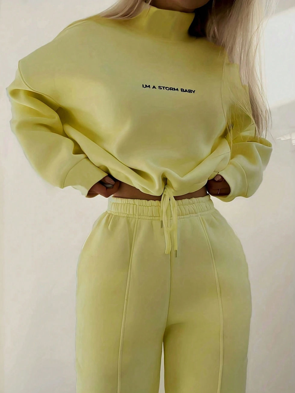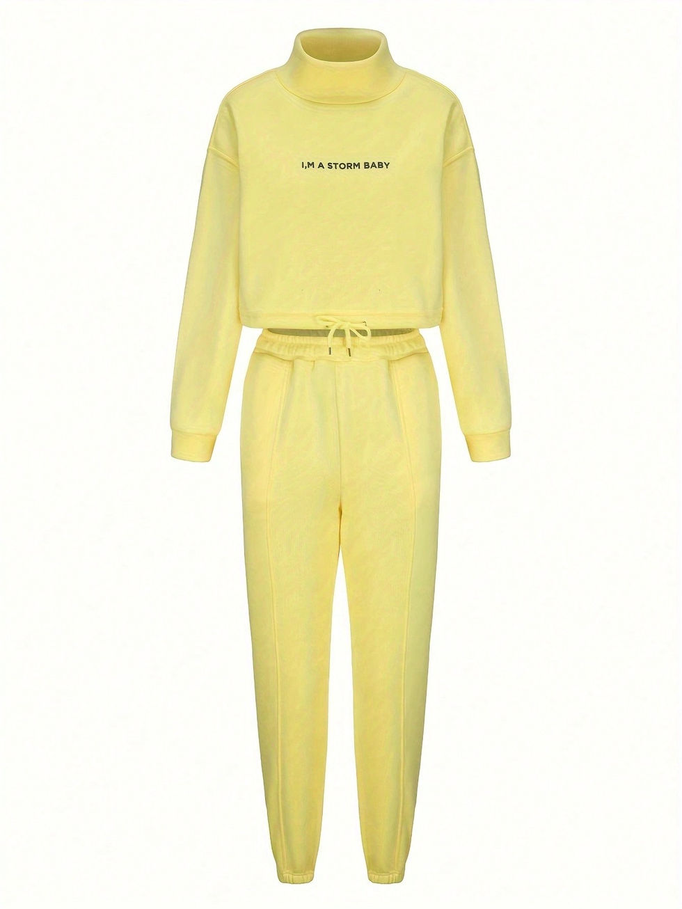INAWLY Gráfica Letra Gola Simulada Ombro Caído Calças de Treino & Moletom