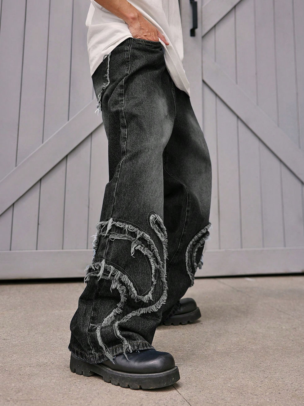 INFLATION Jeans Masculino Com Corte Cru E Perna Larga