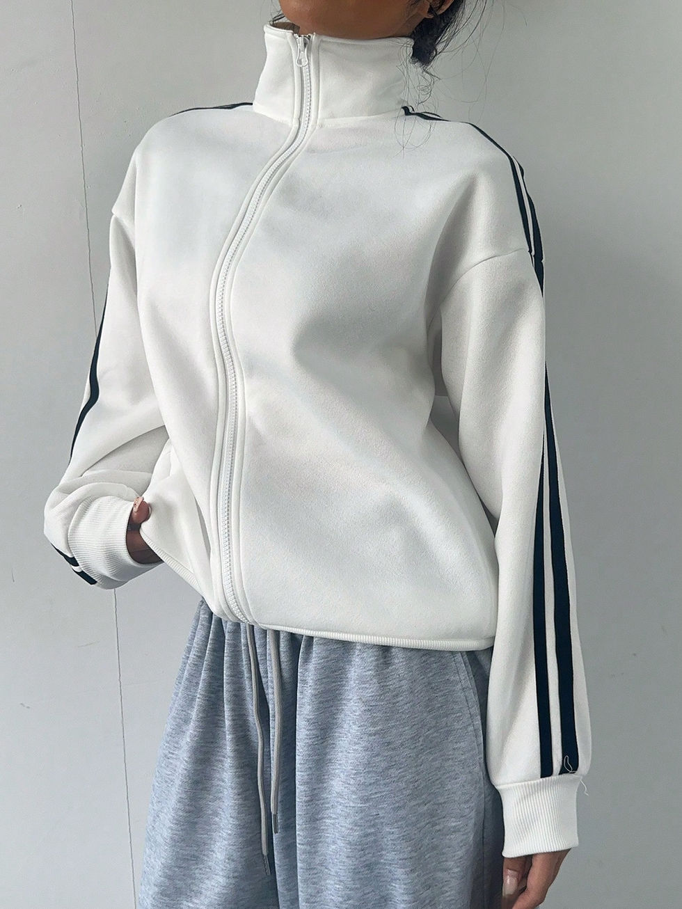 Jaqueta Casual Esportiva Cintura Alta de Manga Longa com Modelagem Larga para M