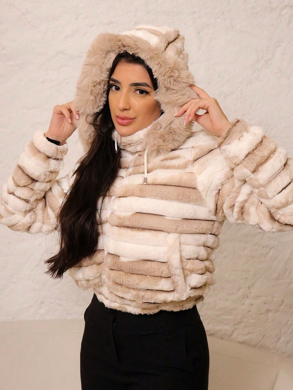 Jaqueta Puffer Dupla Face Teddy Felpudo Feminina Inverno Pelinhos Quentinha Cas