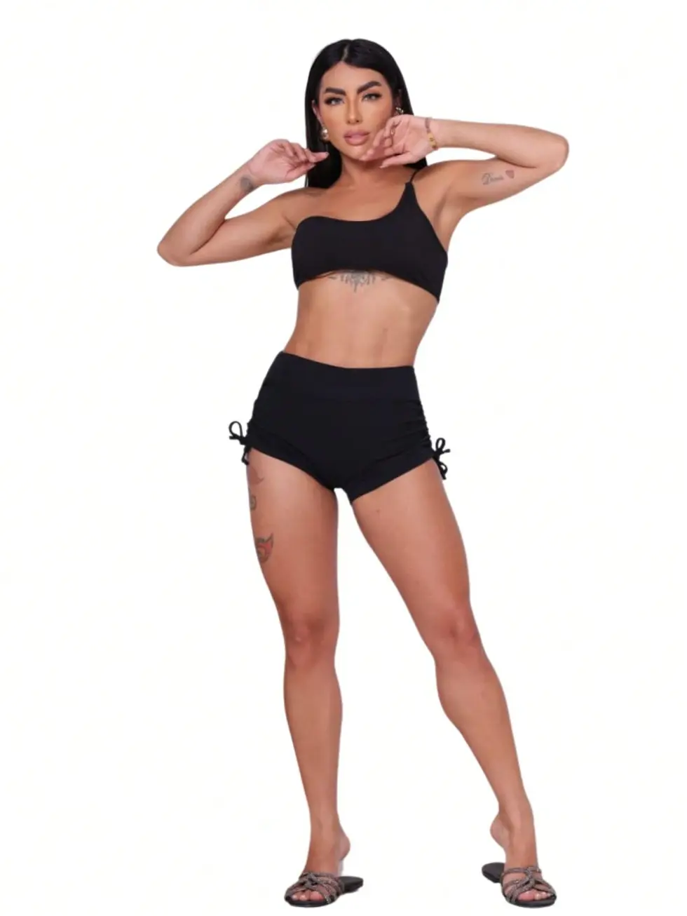 Kickoff Short Moda Praia Com Cordão De Ajuste Lateral Sunquini Cós Alto Tecido